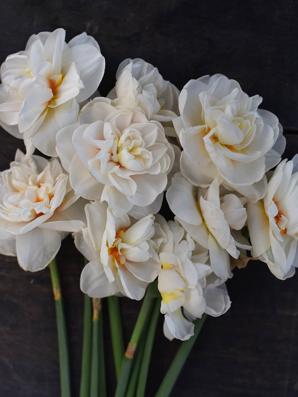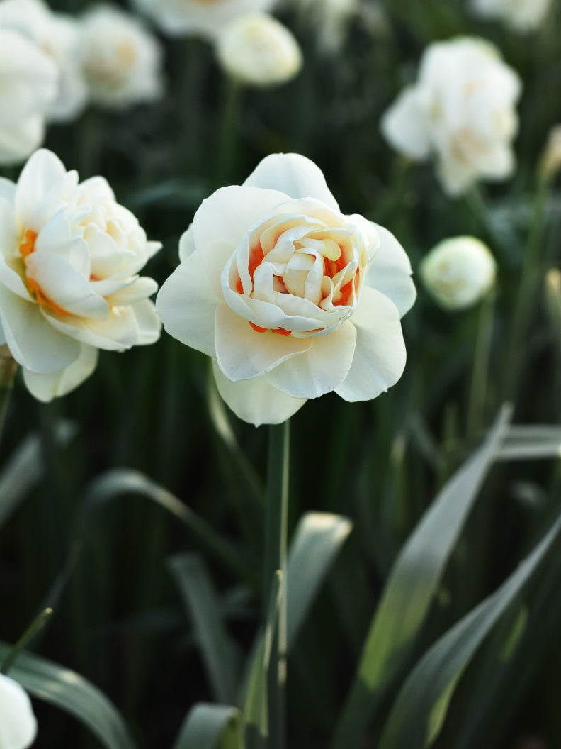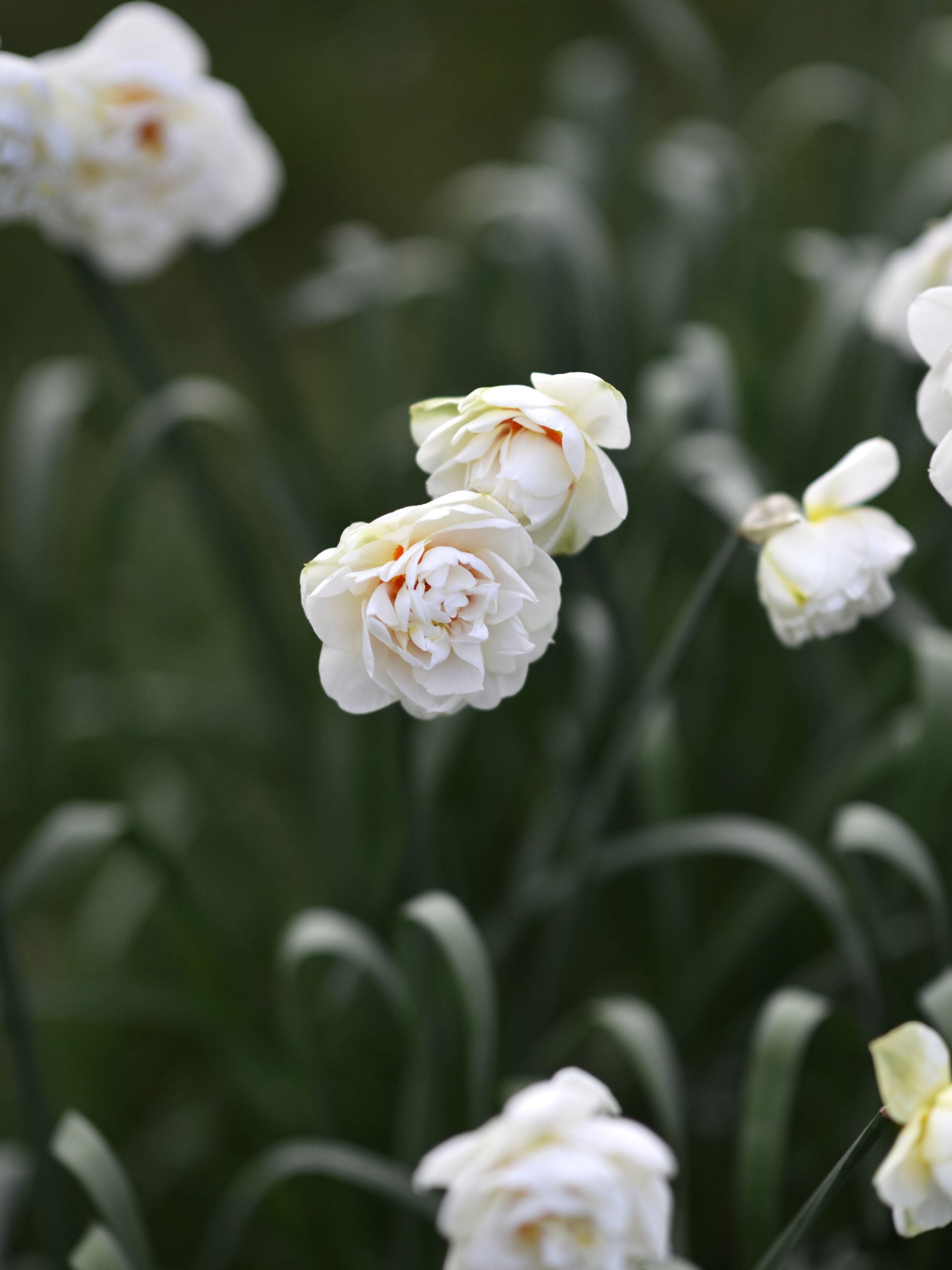 En av våra favoriter bland narcisser. ’Acropolis’ är en fylld vit sort med en rödorange ton i centrum och blommor som liknar rosor i formen. Den trivs i sol i väldränerad jord och är ett fantastiskt vårtecken i trädgården – dessutom ratas den av rådjur. Sorten introducerades 1955 och har behållit sin popularitet sedan dess.