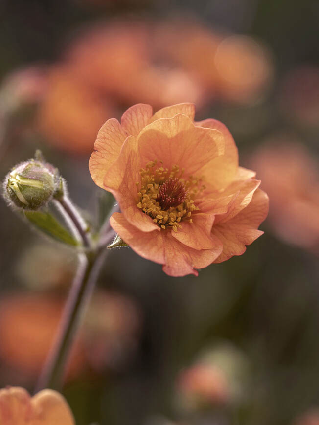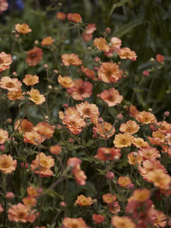 Nejlikrot ’Totally tangerine’ – Geum har orange-aprikosfärgade spräckliga halvfyllda blommor och trivs i fuktighetshållande och näringsrik jord.