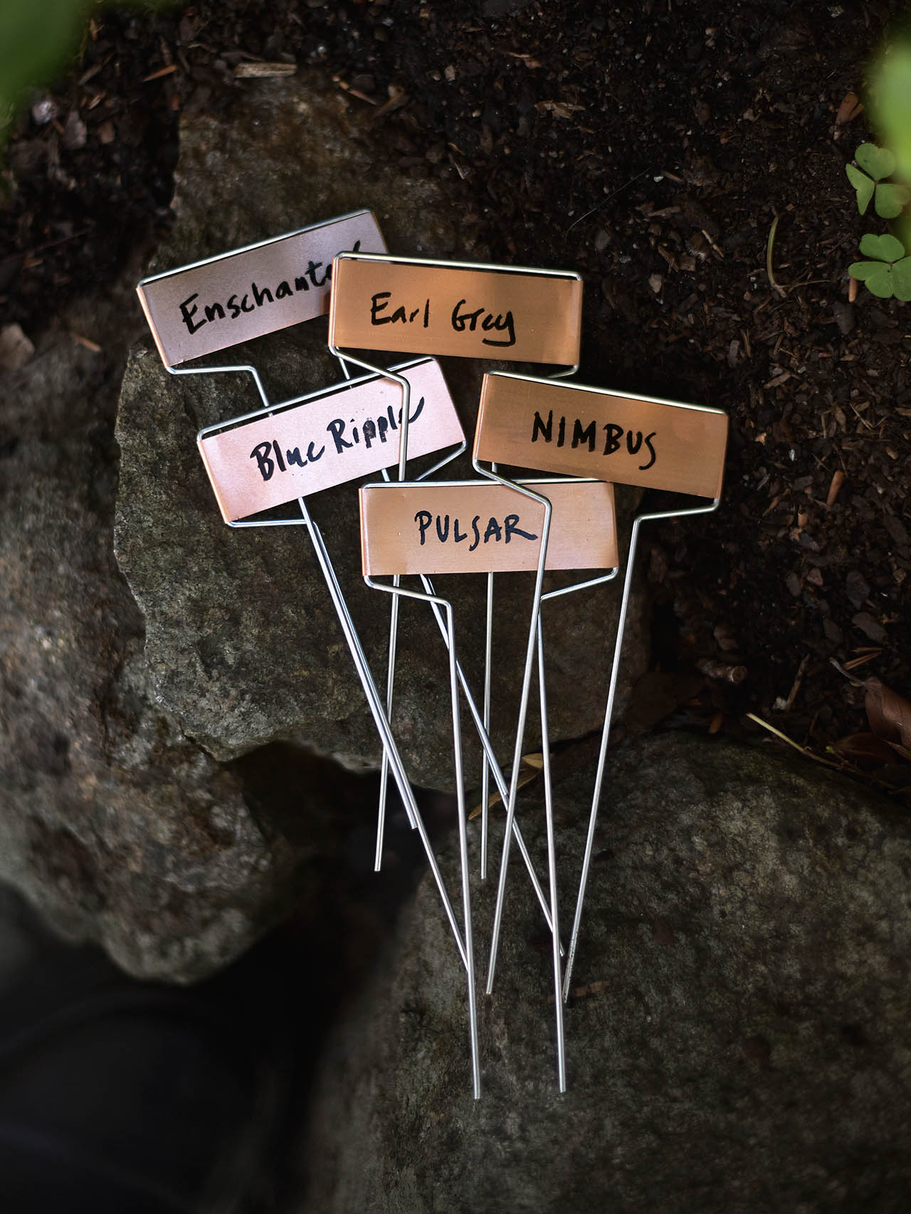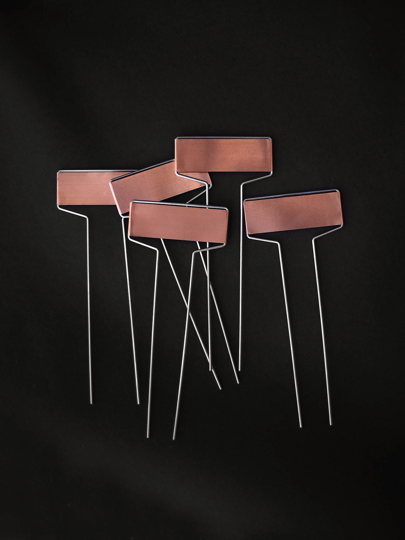 En elegant kopparskylt för att märka upp dina odlingar och planteringar. Passar perfekt att sätta i jorden under hela trädgårdssäsongen. Skriv med en vattenfast tuschpenna. (Går bra att ta bort skriven text med vanligt suddgummi om du inte vill ha texten permanent). Levereras i en vacker kartong.