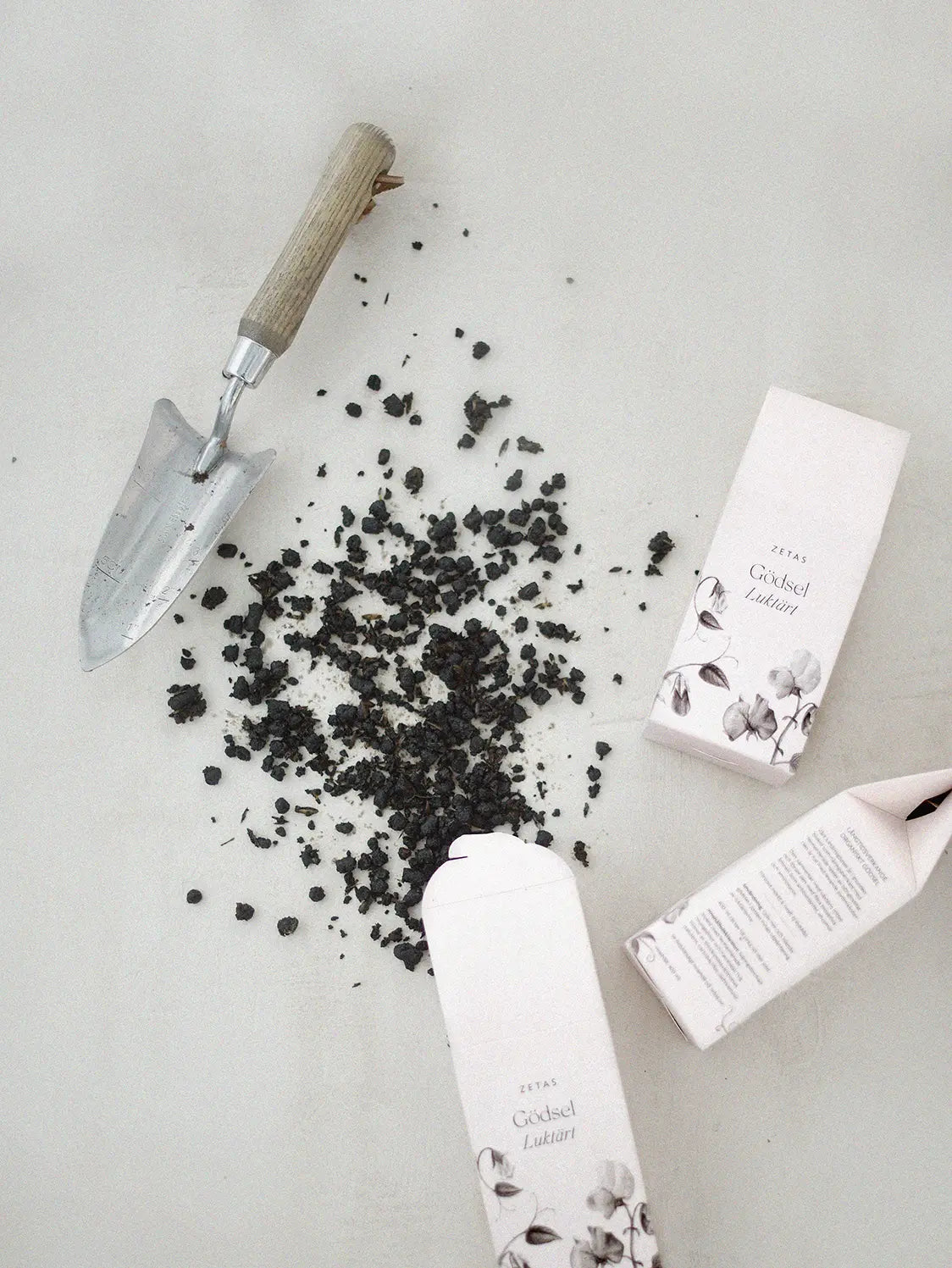 Zetas organiska luktärtsgödsel är i grunden biokol som näringsberikats med fermenterade rester av böngroddar. Den är full med levande jordmikrober som fixerar kväve och CO2. Den samverkar med växtens rötter och förser den med flera bioaktiva ämnen som antioxidanter, enzymer och aminosyror. Den är också klimatsmart då de mjölksyrade bönresterna har all energi kvar och stimulerar de biologiska processerna som skapar humus. Biokolen blir kvar i jorden till 97% i 500 år!