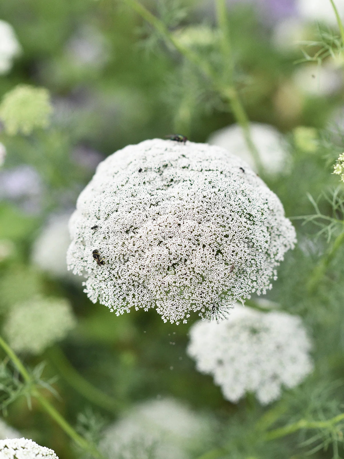 Tandpetarsilja 'Green Mist'. Romantisk, luftig blomma som passar utmärkt som utfyllnad i buketter och rabatter De stora blomklasarna börjar limegröna och öppnar sig gradvis till grönvita. Stjälkarna är långa och robusta med finskuret bladverk. Omtyckta av bin och humlor.