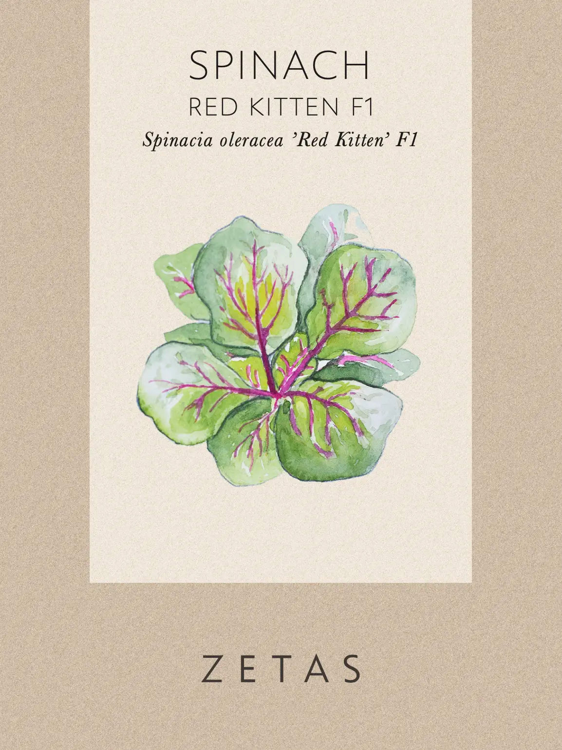 Spenat 'Red Kitten' är en härlig sort med glänsande gröna blad och röda ådror. Långsamma att sätta blommor, mitten av tidig sort och idealisk även för babyblads odling. Mycket bra tillskott till fräscha sallader. Gror bäst i sval jord.
