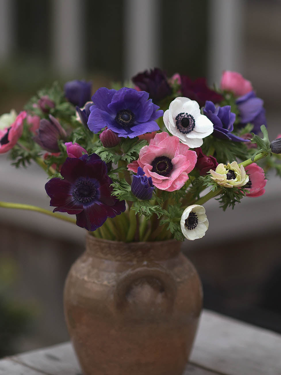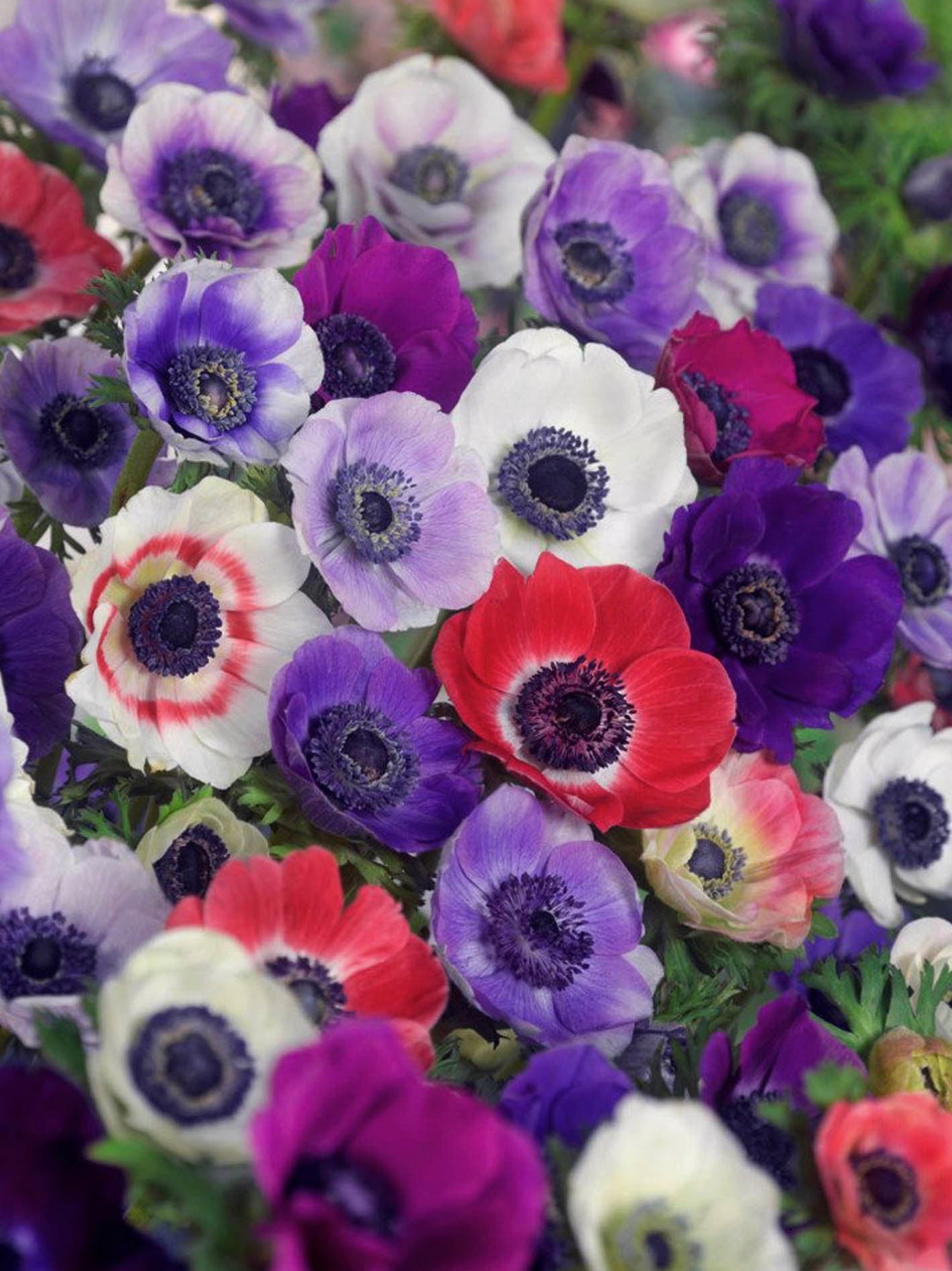 Anemone ’De Caen Mix’ är en otroligt vacker mix anemoner i nyanser av vitt, rosa, blått och lila - alla med svart öga. 'De Caen Mix' är en blandning som bildar en färgsprakande bukett i mjuka toner. Vi rekommenderar den varmt för kreativa blomsterarrangemang och buketter. En knöl kan ge upp till 10-15 blommor! Under sommaren fördubblas dessutom knölarnas storlek och ger ännu större blomsterprakt året därpå om de förvaras frostfritt under vintern. I södra Sverige kan det gå att övervintra bukettanemoner utomhus i väldränerad jord.