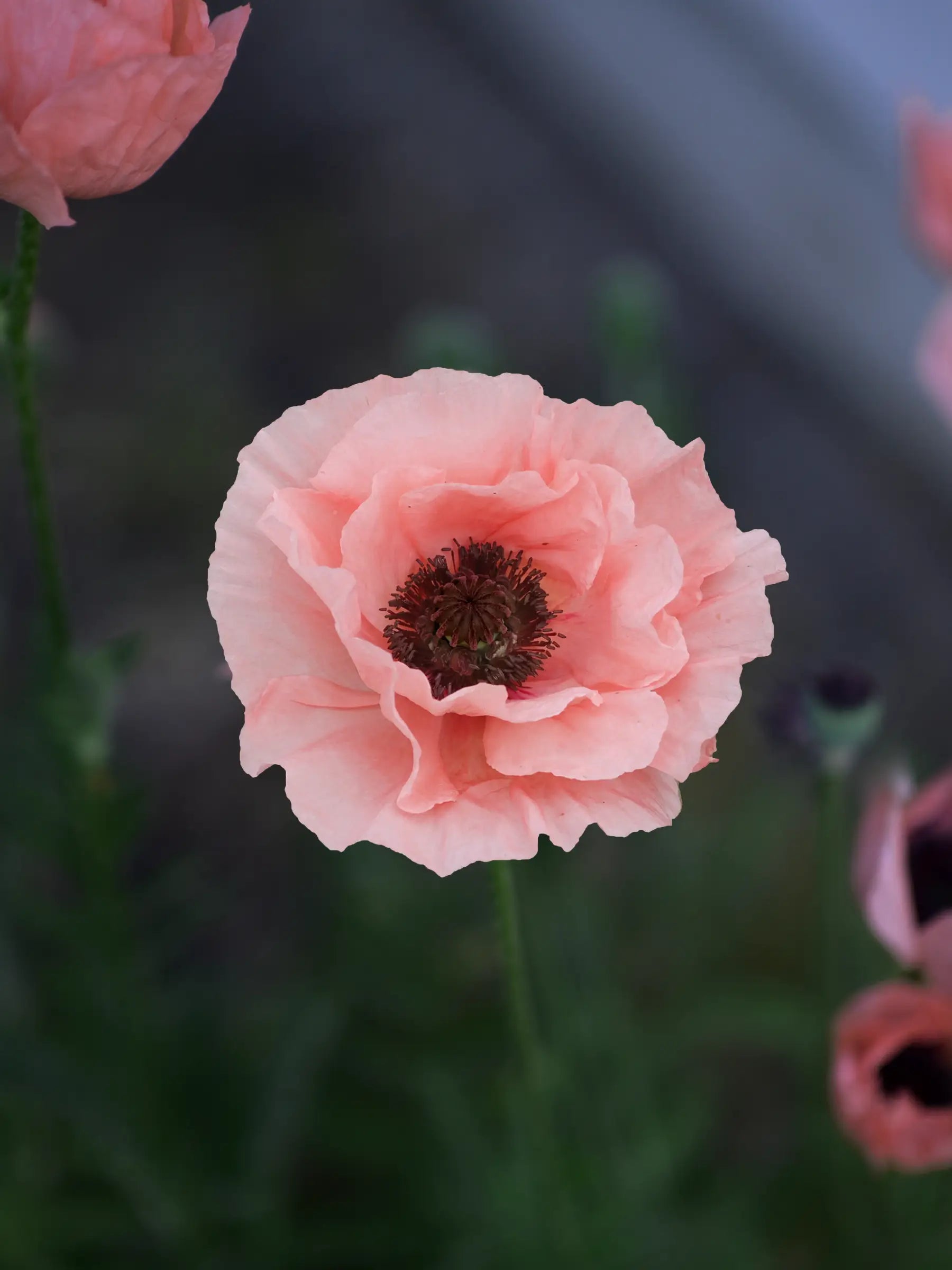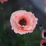 Jättevallmon ’Rococo’ är en utsökt vacker perenn som tillför kraftfull färg till rabatter och planteringar. Dess stora laxrosa blommor med mörka fläckar i mitten skapar ett dramatiskt blickfång och reser sig på sträva stjälkar ovanför ett finflikigt, silvergrönt bladverk.
