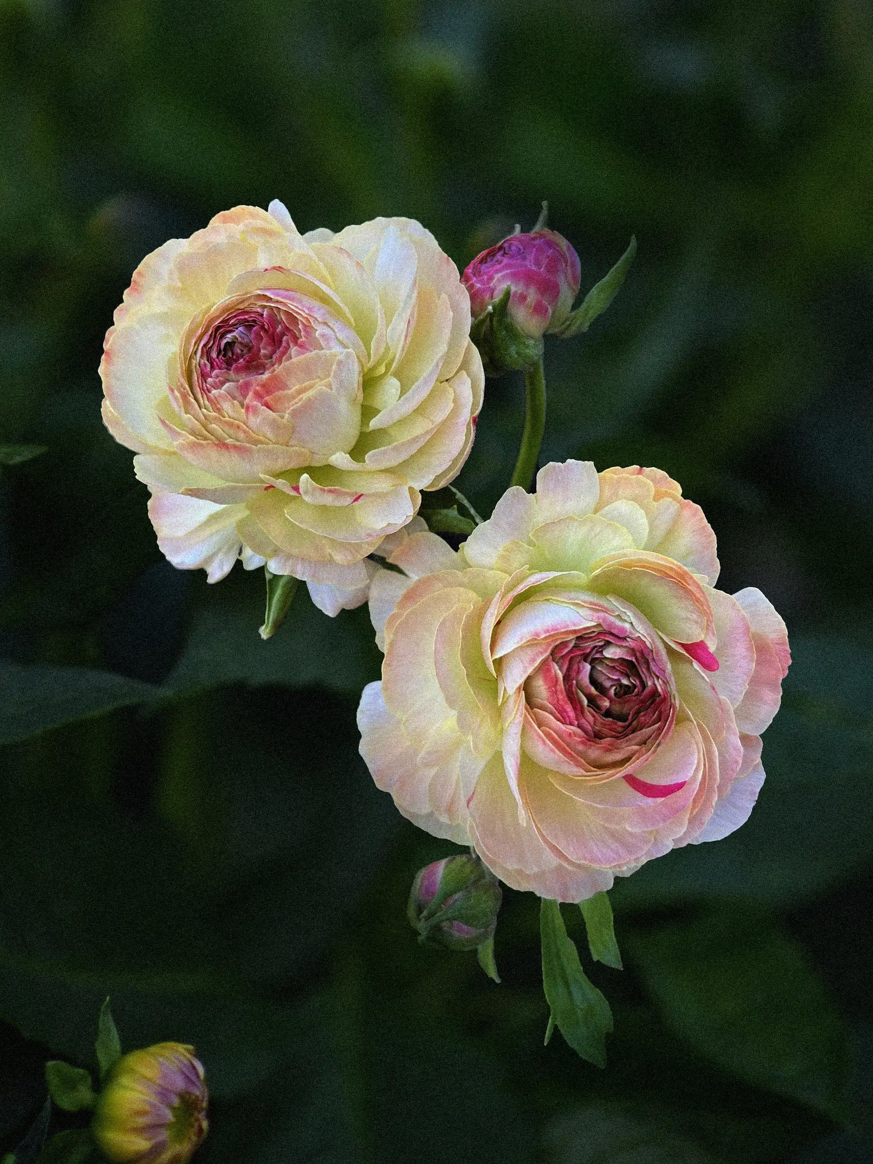 Ranunkel Romance Hydra®, Ranunculus Romance Hydra®. Denna sort har en fin krämig gul färg, och när den öppnar sig blir den lite mer rosa i kanterna. En väldigt vacker och ovanlig färg. Den ger massor av blommor. Blombladen har ett litet lager av vax som ger dem ett gnistrande utseende och en lång vaslivslängd också.