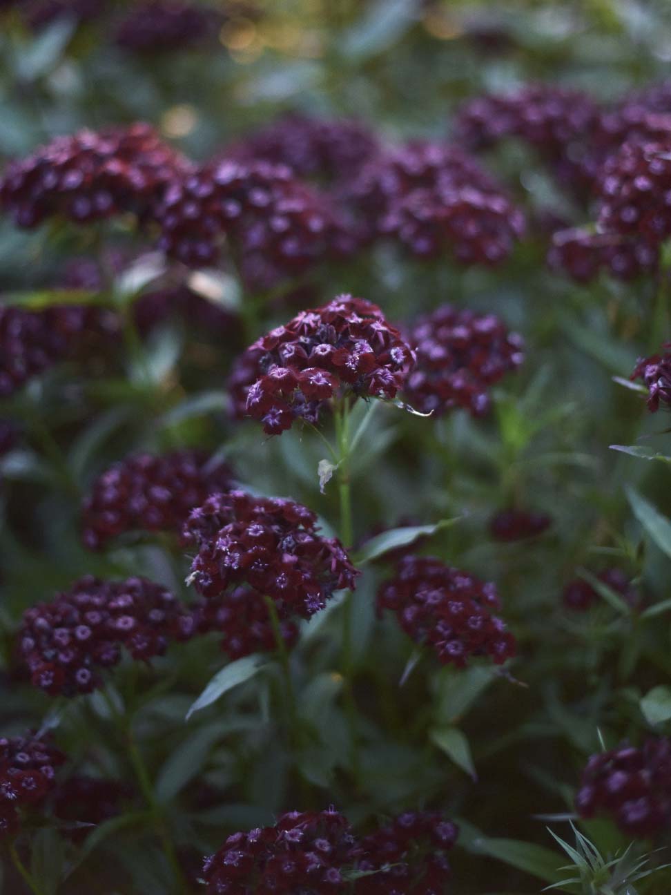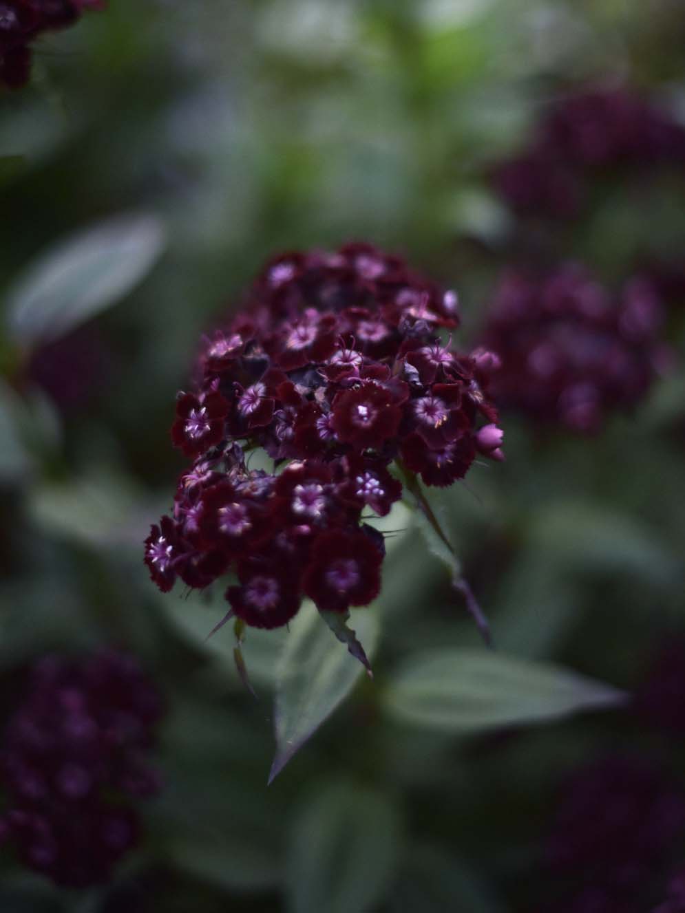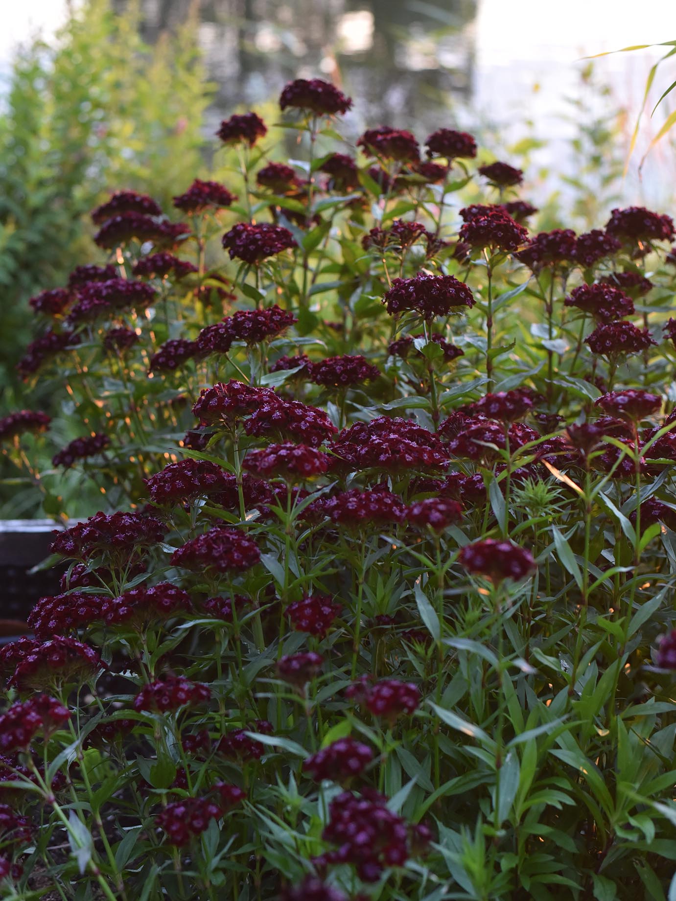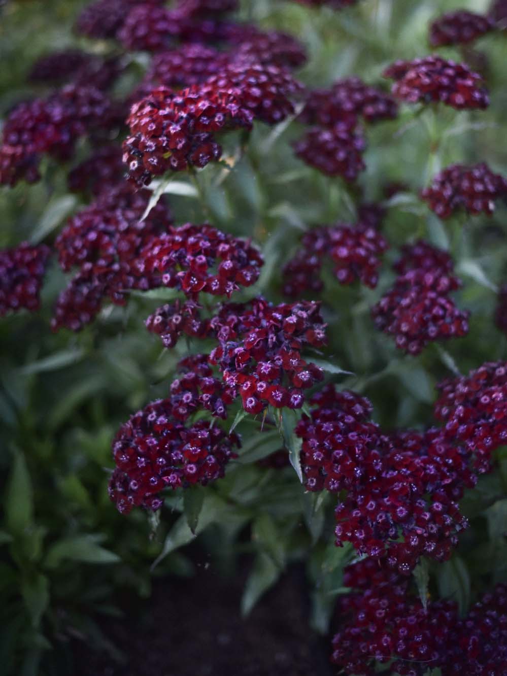 Blomning: Blommar i juli-september med mörkt karminröda nästan svart blommor. Väldoftande. Putsa bort vissna blommor för att stimuler bildning av nya knoppar.