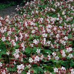 Flocknäva är en av de bästa marktäckande perenner i både sol och skugga. Den är torktålig och anspråkslös. De vitrosa blommorna har röda foderblad och skaft som översållar plantan i juni-juli. Höjd 25 cm.