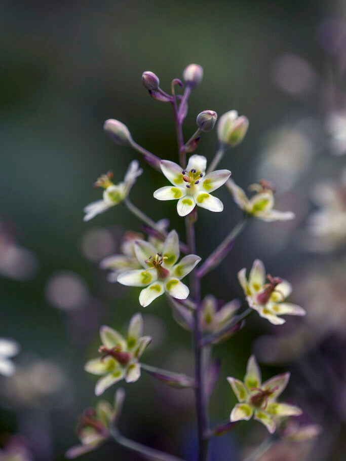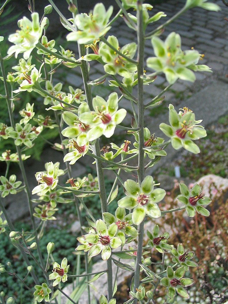Grönlilja är en mycket vacker speciell växt. Den får eleganta, grågröna blad som bildar gräsaktiga tuvor. Blommorna är stjärnformade och grönvita och bärs upp av höga, grålila, förgrenade stänglar. Den blir 30-40cm hög. Grönliljan blommar i juli−augusti och vill ha en solig till halvskuggig växtplats. Jorden bör vara mullrik, väldränerad och gärna något kalkhaltig.