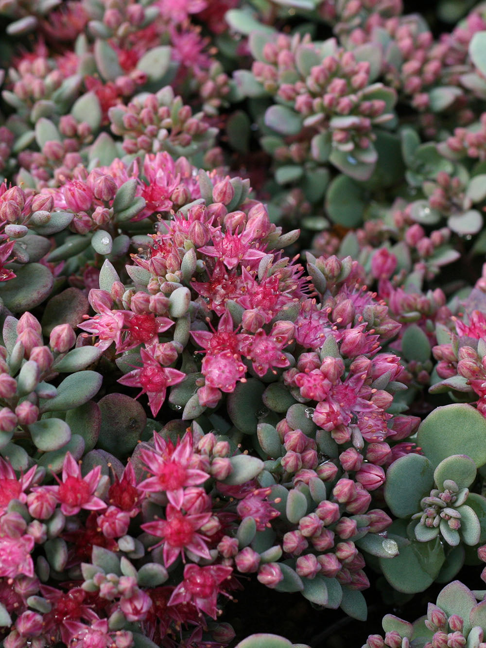 Liten kärleksört ’Lidakense’ – Hylotelephium cauticola får rödrosa blommor som är små, stjärnlika och sitter i täta samlingar. Bladverket är små, blådaggiga, köttiga blad. Nedliggande, bildar utbredda tuvor.
