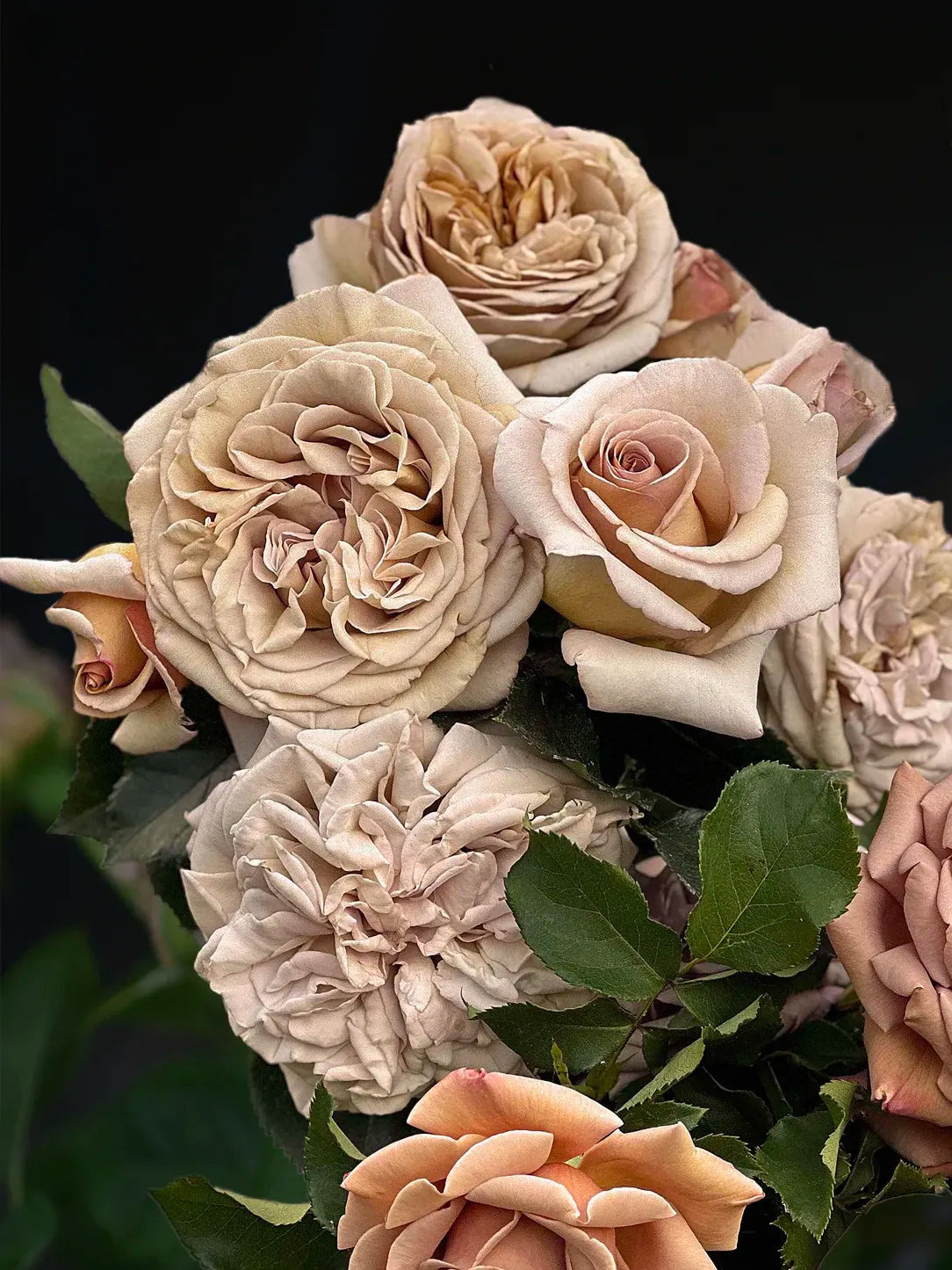 Floribundaros 'Rallye des Gazelles®' barrot får eleganta stora, fyllda blommor i en blekare mokkafärg med inslag av aprikosa nyanser i mitten. Stark doft. Blommar flera gånger under en säsong, istället för bara en gång. Det gör att du kan njuta av blommorna från tidig sommar till höst! Utmärkt i både rabatten och i kruka.
