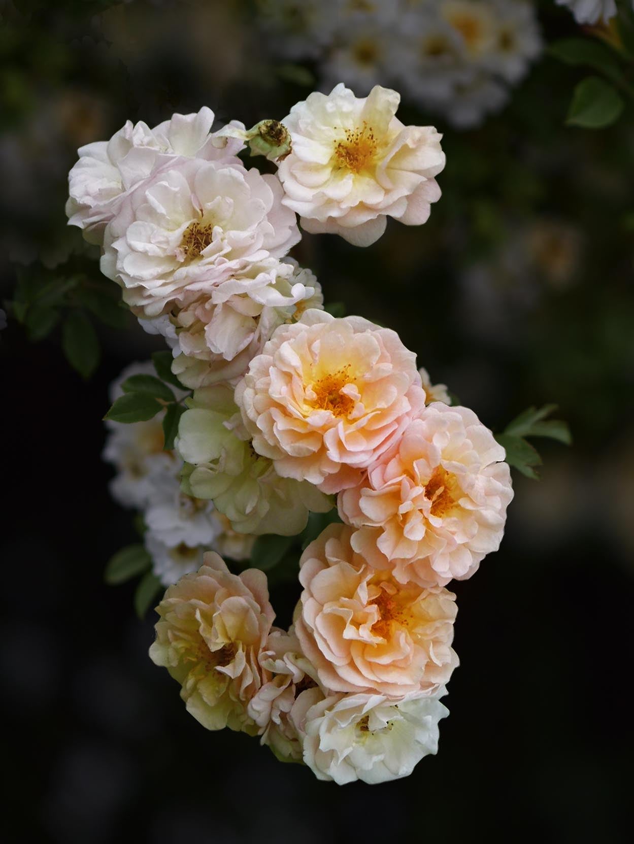 Buskrosen ’Ghislaine de Féligonde’ är en underbart och sött doftande ros med aprikosorangea knoppar som öppnar sig i persikorosa för att bleknar till ljusgult och gräddvitt. Blommar rikligt med kortare uppehåll från slutet av juni till långt in på hösten med små-medelstora blommor i klasar. Ett enda årsskott kan ge ett trettiotal blommor. Som buskros pryder den sin plats som solitär eller i bakgrunden av en blandad plantering. Kan även bindas upp och användas som klätterros, perfekt mot ett växttorn, vällande över ett staket eller mot en spaljé. Har få taggar, en del grenar är taggfria. Sätter sällan nypon. Fin som snittros.