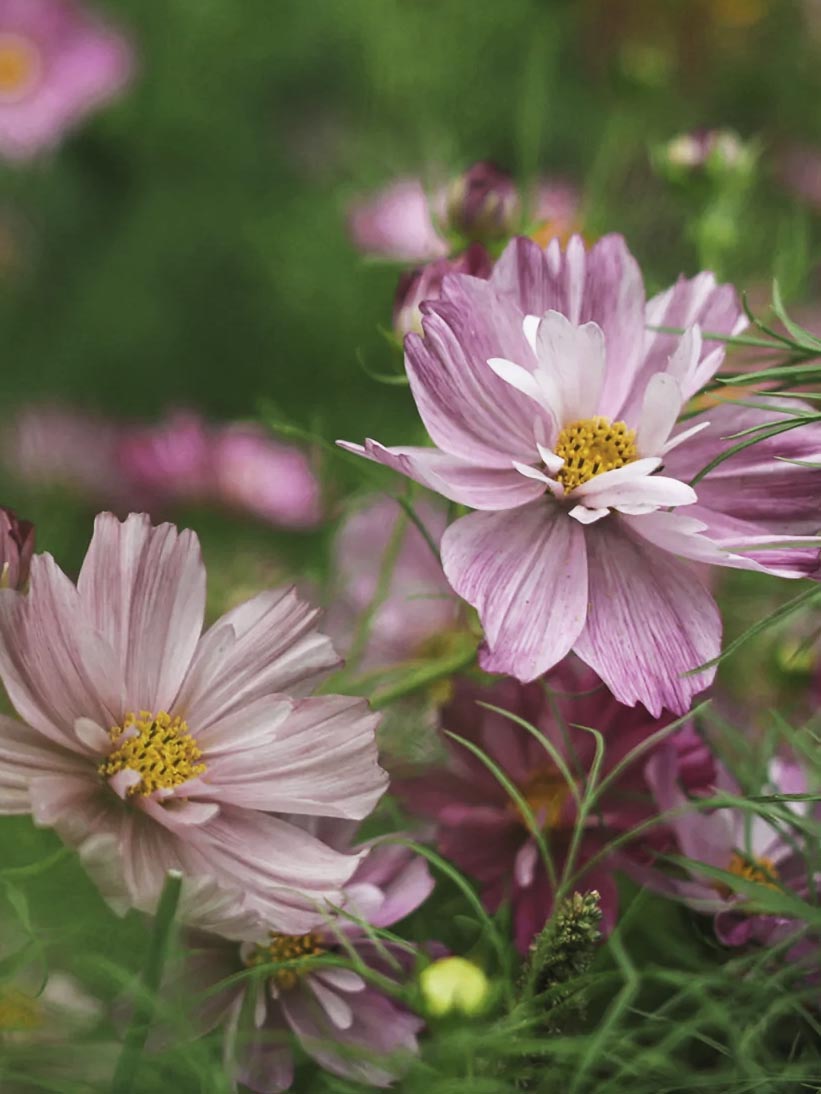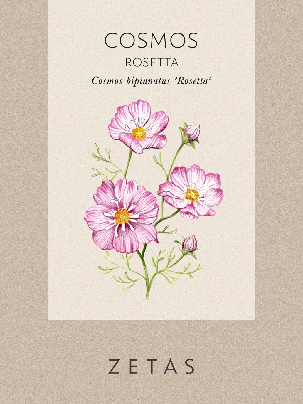 Rosenskära ’Rosetta’ får stora randiga blommor i nyanser av rosa och vitt och en extra ring av små, fluffiga kronblad runt mitten ger denna sort ett charmigt utseende. Växterna är buskiga med frodigt, finflikigt bladverk. Utmärkt snittblomma. Lockar till sig fjärilar och bin.