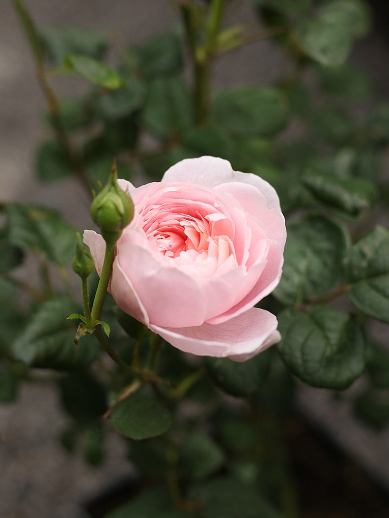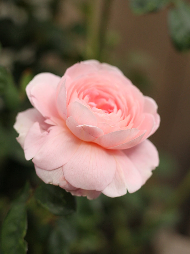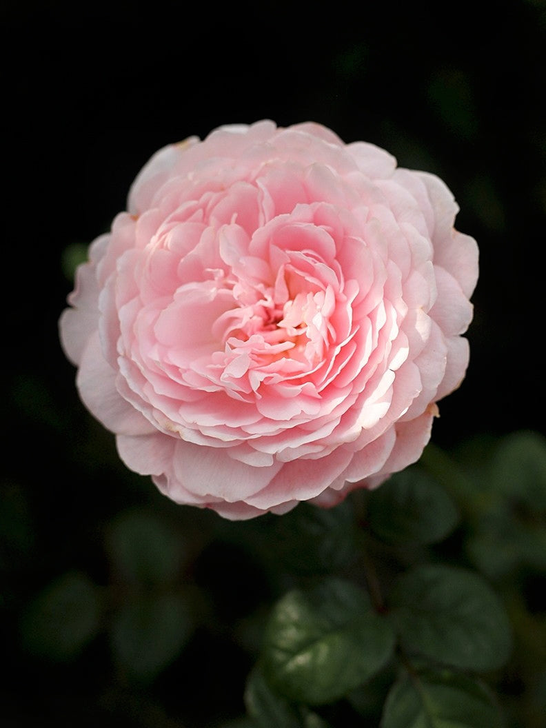 Blommorna är stora, bollformade till skålformade och mycket symmetriska. Kronbladen behåller sin kupade form när blommorna öppnar sig – något som ger en fin effekt! Färgen är ljust aprikosrosa till rosa som bleknar med tiden. Doften är söt och delikat med inslag av myrra. Blomningen riklig från slutet av juni till senhösten.