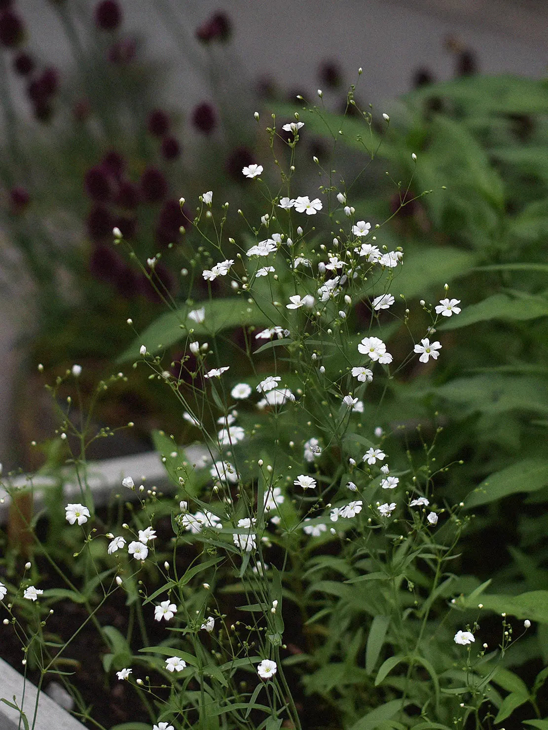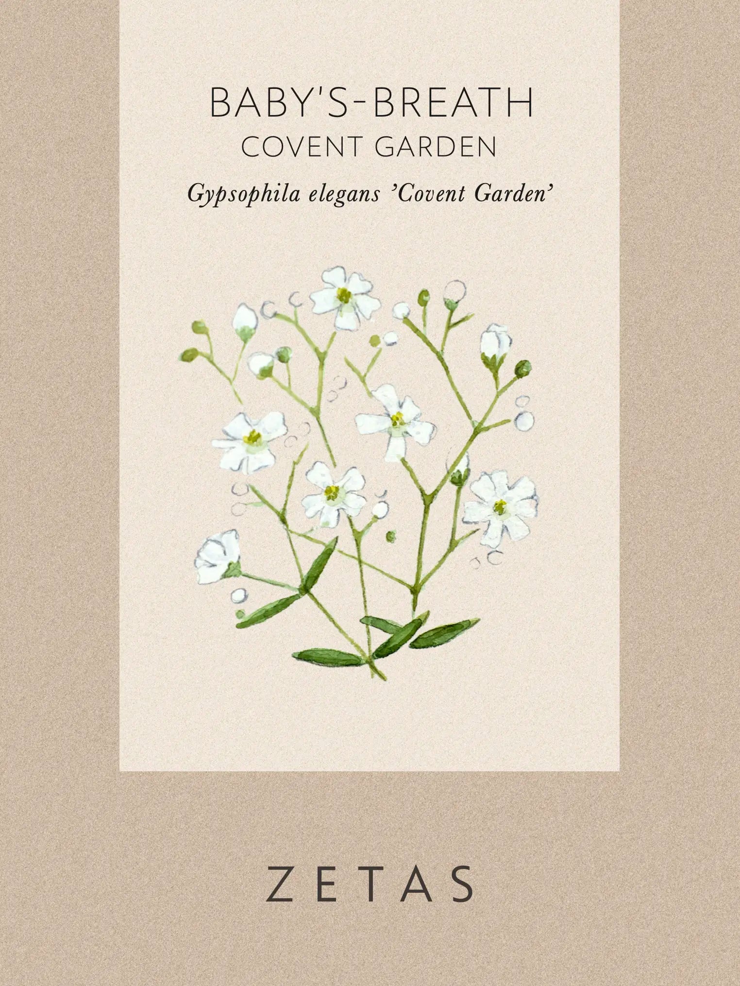 Vit sommarslöja 'Covent Garden' vackra blommor hålls i luftiga, rent vita moln över bladverket. Det svävande växtsättet gör den perfekt i blandade planteringar och buketter. Blommor gör en söt dekoration för desserter. Lättodlad och rikt blommande. Bi vänlig.