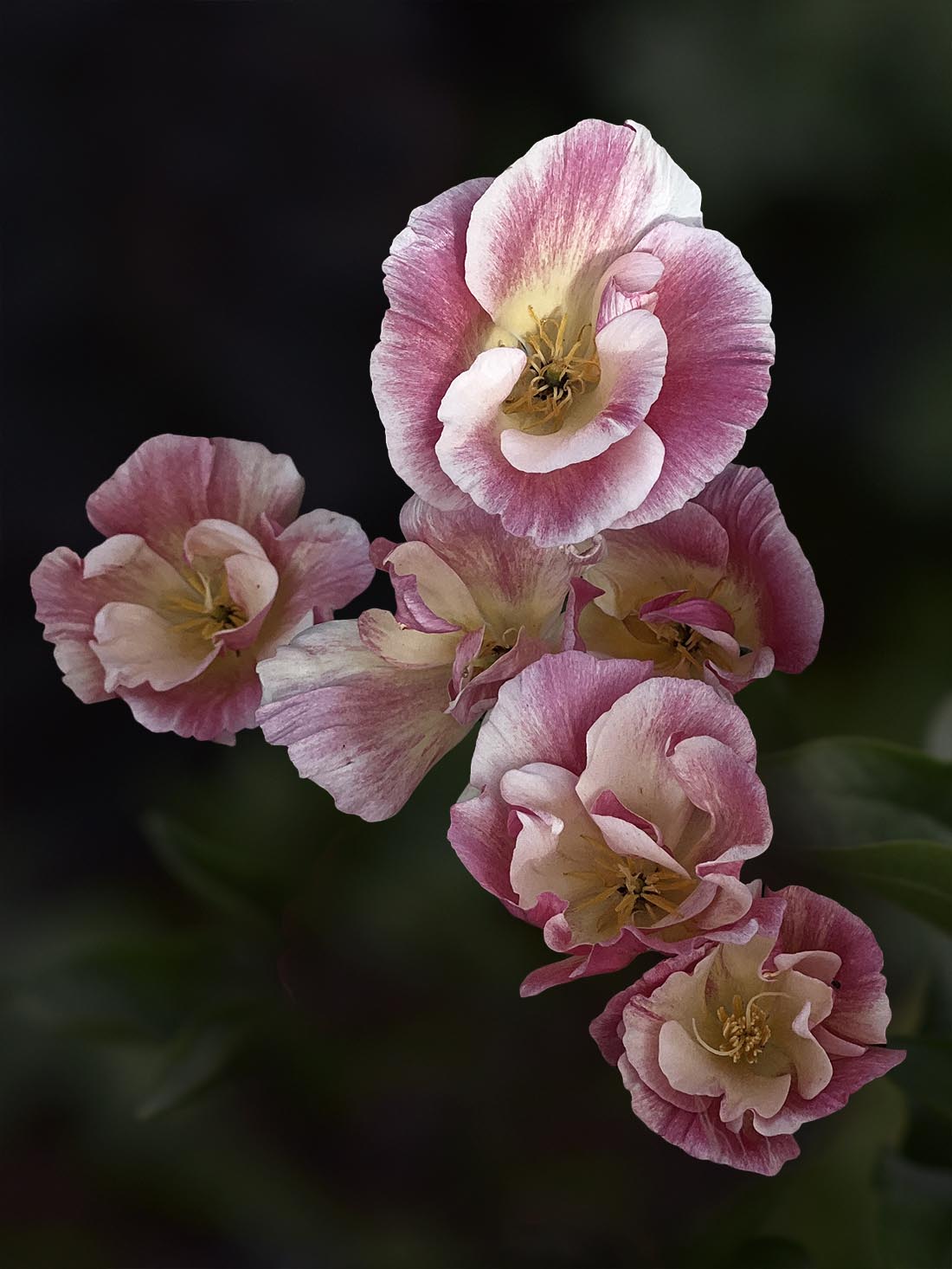 Sömntuta ’Thai Silk Rose Chiffon’. Den morgontrötte kommer att tycka om den här blomman som inte riktigt vill komma i gång förrän framåt förmiddagen. Men därefter blommar den snällt och rikligt ända fram tills det är tid för eftermiddagste. Just den här sorten bjuder på blomning i hallonrött på krämvit botten. De halvfyllda blommorna gör sig fint som kantväxt i rabatten men den trivs också bra i kruka på terrass och balkong.