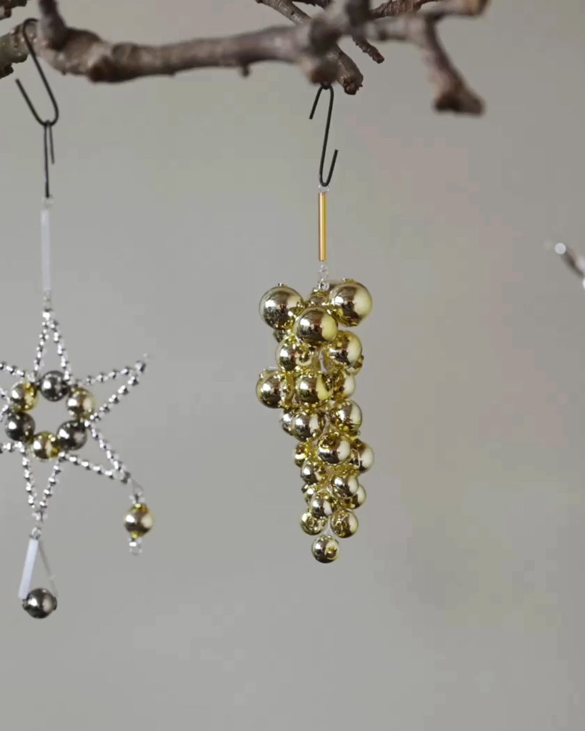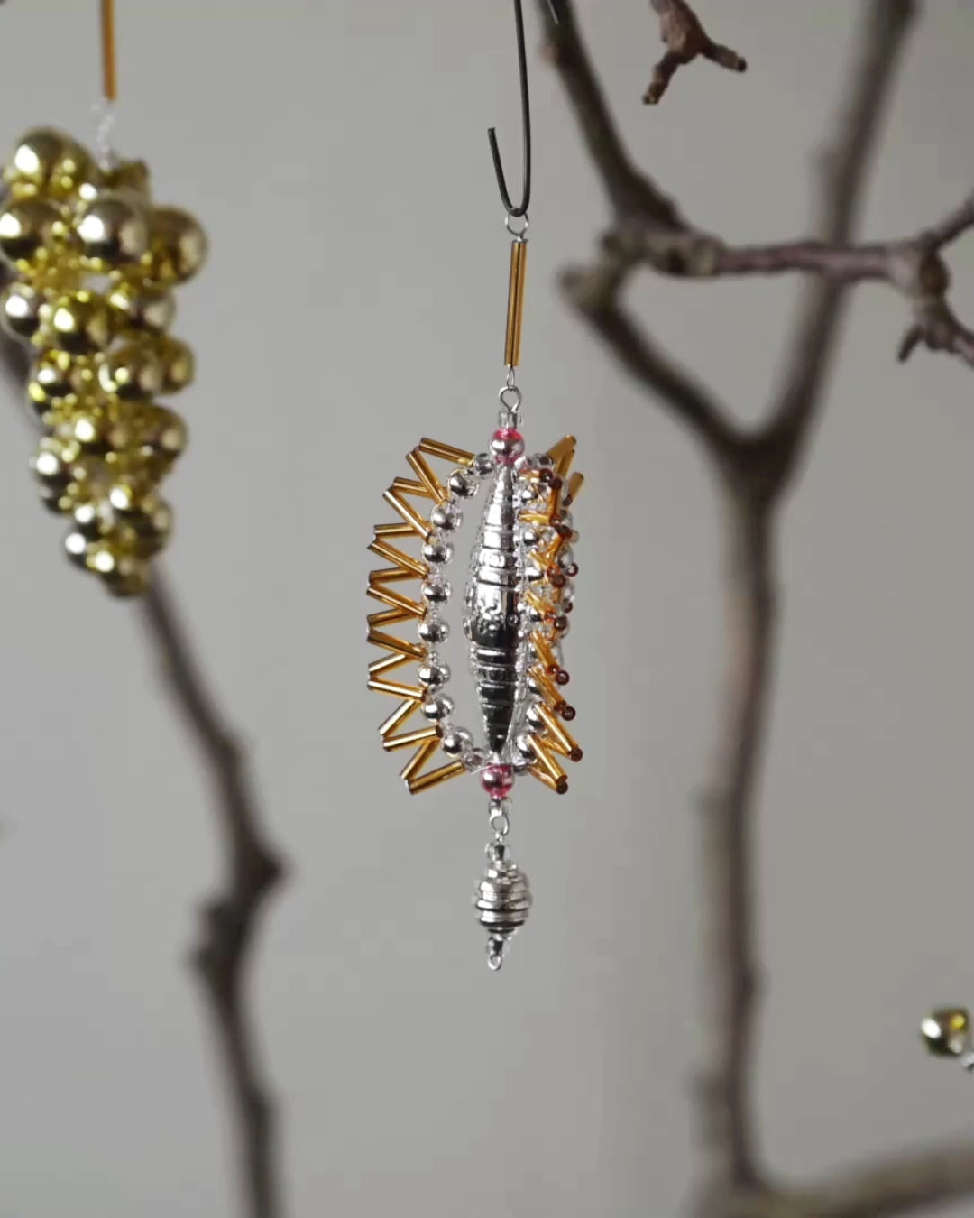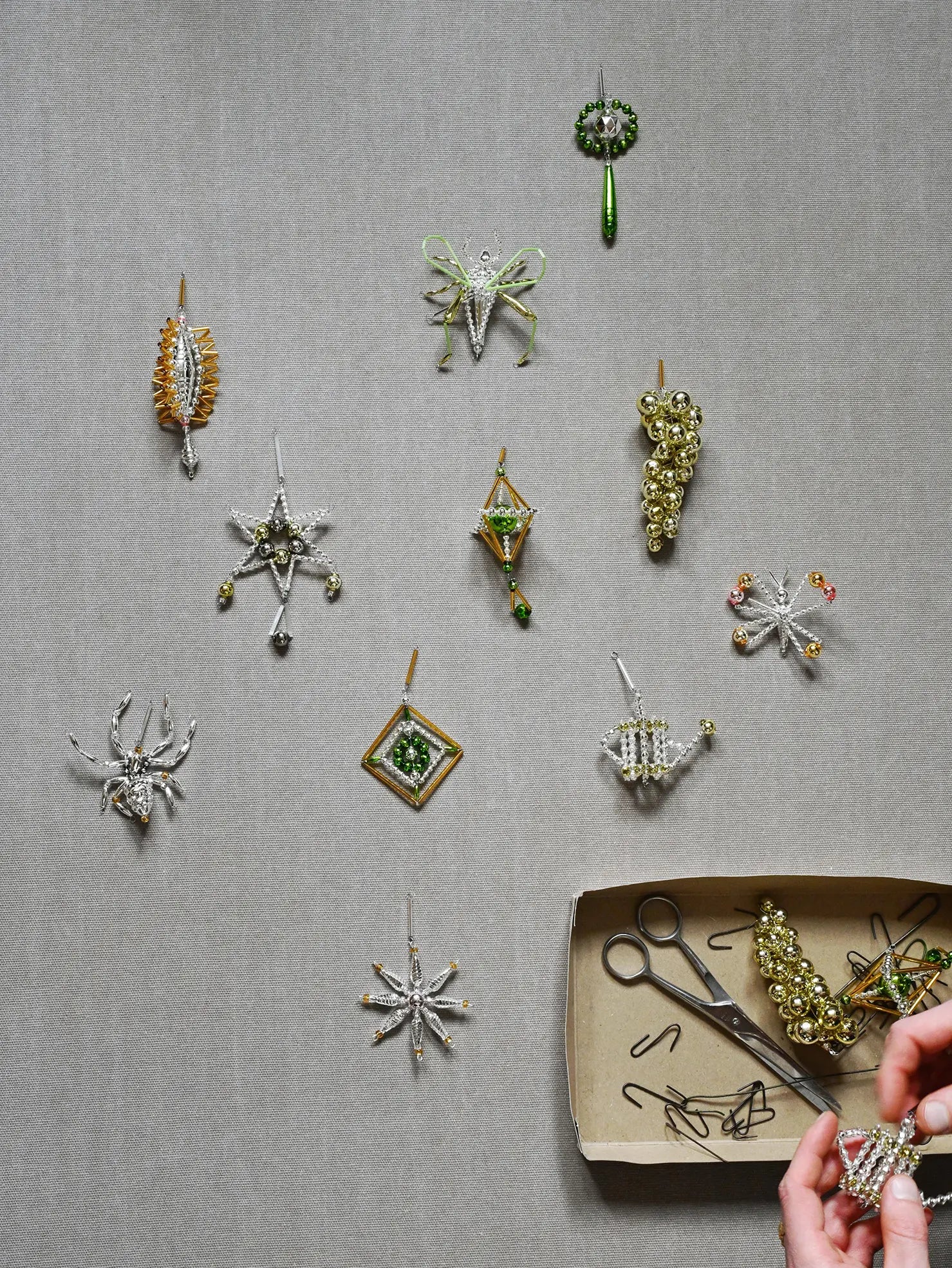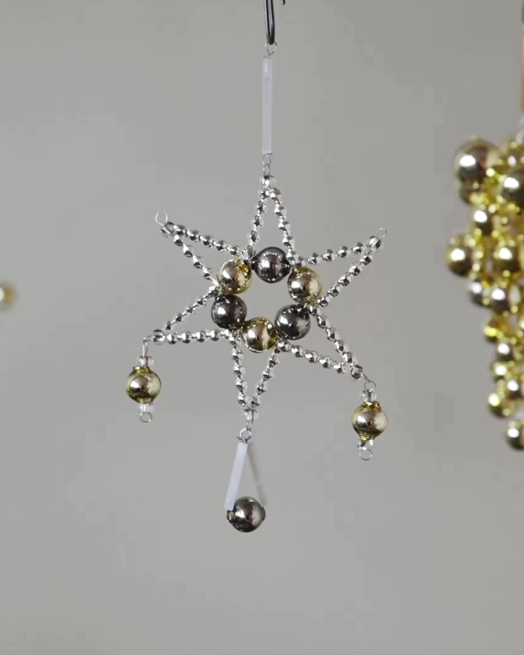 Varje prydnad är handgjord i Poniklá, Tjeckien, med en unik metod där små glaspärlor blåses, försilvras, färgas och skärs innan de träs samman för hand. Resultatet är en skimrande dekoration av sällsynt hantverksskicklighet, en tradition som idag är erkänd av UNESCO som ett kulturarv.
