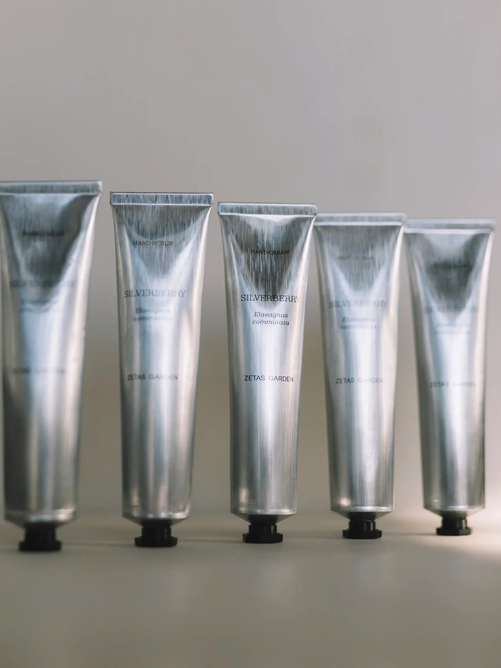 Vid utgången av vår handelsträdgård växer silverbusken, Elaeagnus commutata. Ett uppstammat exemplar med silverskimrande blad, små guldgula blommor och en doft som ingen riktigt kan sätta fingret på. Inte söt, inte blommig, men något däremellan. Där tvärstannar våra kunder och börjar sniffa upp i luften. Det har till och med bildats en kö vid silverbusken då många undrar var den fantastiska doften kommer ifrån. Frisk, lite kryddig och varm. En blandning av honung, jasmin och citrus. Det är den doften vi tagit vara på och som gett inspiration till vår kollektion.