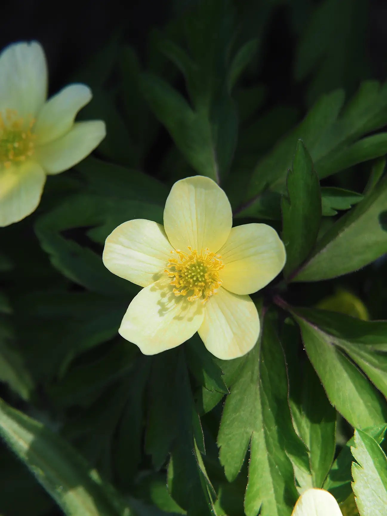 Svavelsippa 'Sioux', Anemone lipsiensis 'Sioux' är en hybrid mellan vitsippa och gulsippa. Denna perenn blommar under våren med ljusgula till svavelgula blommor som står på korta, upprätta stjälkar ovanför djupt flikiga blad. De unga bladen har en bronsaktig ton, vilket ger en fin kontrast till blommorna.