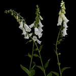 Fingerborgsblomma 'Alba' får vita blommor på en 120-180 cm hög stjälk. Båglik, axlik blomställning. Vid basen en bladrosett av ljust gröna, ludna blad som den ståtliga blomstjälken reser sig ur. Lättodlad, tvåårig planta som passar att ’vandra’ runt i många sammanhang.
