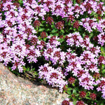 Gråtimjan - Thymus är den bästa marktäckaren av timjanarterna. Dess grågröna färg gör den till en bra sällskapsväxt och underplantering. Denna timjan passar även i kruka. Behöver delas när den blir kal i mitten. Klarar att man ibland går på den utan att den blir skadad. Små rosa blommor som sitter i något glesare samlingar jämfört med back- och purpurtimjan. Omtyckt av fjärilar och bin.