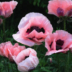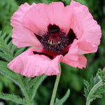 Jättevallmo ’Raspberry Queen’ får stora fina rosa blommor med en mörk botten. Frökapseln är mycket dekorativ när blomningen är över.