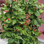 Rubus ’Baby Cakes’ är en vacker planta då de växer väldigt kompakt och passar fint i kruka. Bären blir stora och söta. Trivs i sol och halvskugga. Passar fint vid balkong eller terrass.