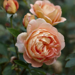 Austinros ’Lady of Shalott’ från brittiska rosförädlaren David Austin har ljuvligt skålformade och löst fyllda blommor. Kronbladen skiftar i orange och aprikos med inslag av laxrosa och guldgult. Knopparna är mörkare, doften stark och kryddig med inslag av äpple och kryddnejlika. Växtsättet är buskigt med bågböjda grenar och ett friskt grönt bladverk. Unga blad har en fin bronsaktig ton. En robust och motståndskraftig ros som blommar rikligt och kontinuerligt. Den har fått sitt namn efter en av Lord Alfred Tennysons dikter för att fira hans tvåhundraårsdag. Passar utmärkt i blandade planteringar och stora krukor. Jättefin som snittblomma.