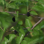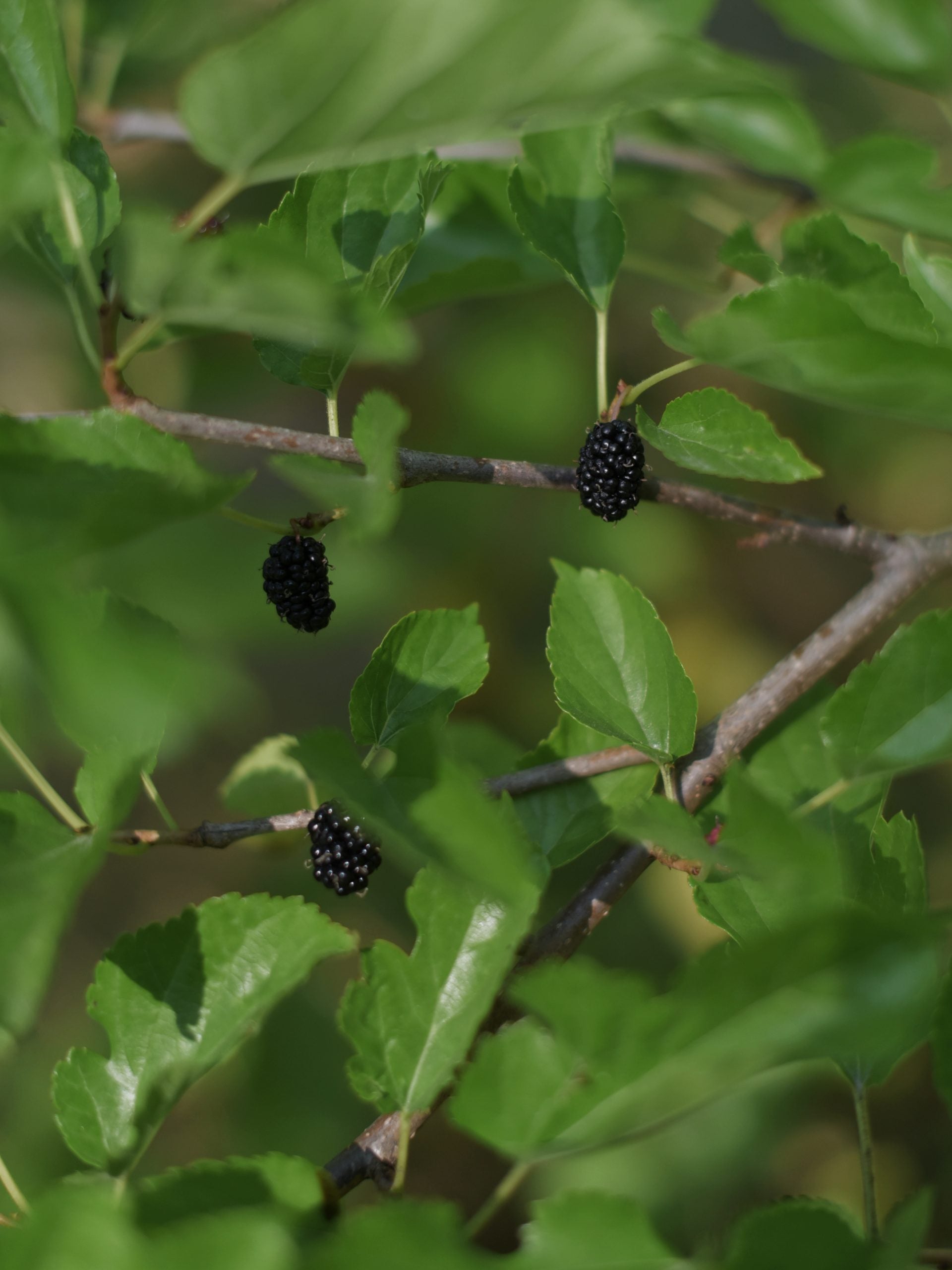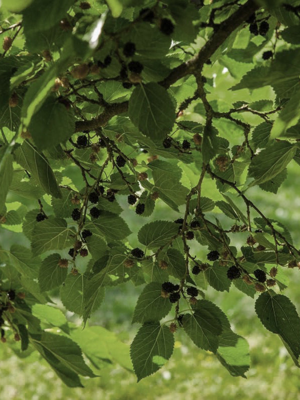 Mullbär ’Mulle’ bjuder på svarta, söta, aromatiska bär från juli till september. I början är växtsättet buskformat men blir med tiden ett vackert träd med ljusgrönt blankt bladverk. ’Mulle’ är betydligt härdigare än svart mullbär, Morus nigra, och har något mindre bär. Trivs bäst på solig, skyddad växtplats i väldränerad jord.