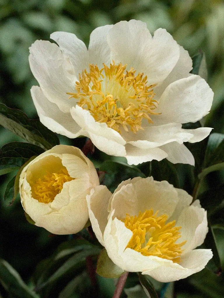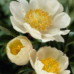 Paeonia  'Claire de Lune' är en tidigblommande svindlande vacker pion där färgen påminner om en linnefärgad sidennäsduk. Den får flera sidoknoppar vilket gör att man får njuta knoppar och blommor under lång tid. Brukar ha stark tillväxt och blir uppemot en meter bred på bara ett par år. Lättodlad och mycket vacker. Klassisk och sober!
