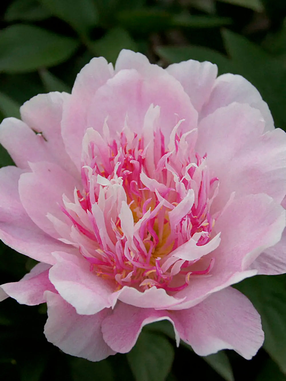 Paeonia 'Do Tell'. Den här pionen fick medalj av American Peony Society 2004 och den har många fina egenskaper. Blomningen sker tidigt redan i början av juni. Blommorna har ett nästan metalliskt rosa skimmer i olika rosa nyanser. Brukar få flera sidoknoppar. Den brukar rota sig snabbt och blir på kort tid en vacker kraftig pion. Svag doft.