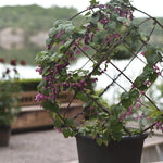 Plantera i soligt till halvskuggigt läge i en stor kruka, minst 20 liter, med väldränerad och näringsrik jord. Ge växten stöd i form av spaljé, nät eller trådar att klättra på. Håll jorden jämnt fuktig och vattna regelbundet. För att främja riklig blomning och god tillväxt, tillför flytande organisk näring varannan vecka under växtsäsongen. Kan övervintras frostfritt i ett ljust och svalt utrymme. Klättrar upp till 2–3 meter.