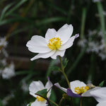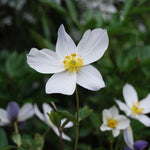 Har stora enkla blommor, vita med lavendelblått band på utsidan och gult ståndarrufs i mitten. Mycket lång riklig blomning från juni till september. Den har flikiga gröna blad och blir cirka 40 cm hög.’Wild Swan’ är en korsning av olika anemontyper, både tidig- och senblommande. En unik anemon och tidigare vinnare av ”New Plant of the Year” på Chelsea Flower Show. Sorten är förmer än utsökt och får det högsta betyget i Zetas egen betygsskala.