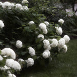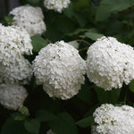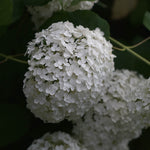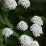 Blommor: Blommar på årsskotten med vita, stora, bollformade blommor som i knoppstadiet är limegröna. Långvarig blomning från juli till september. Klipp gärna bort de bruna blomställningarna på senhösten. Vänta med beskärning till våren.