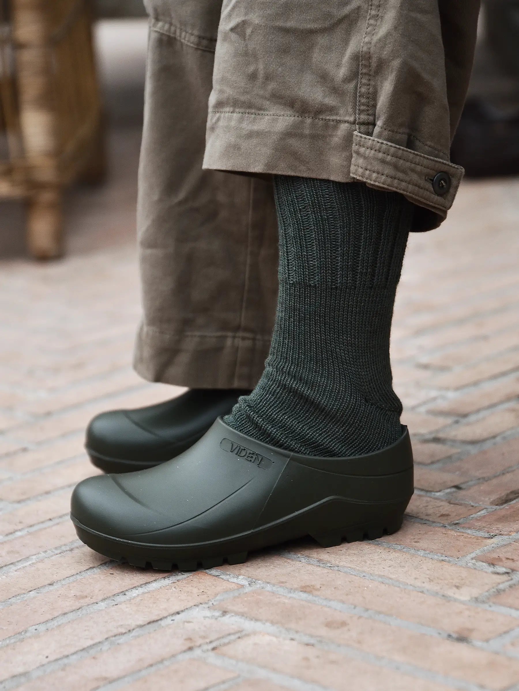 Strumpor i ull ’Ribbed’ juniper green är mjuka och slitstarka trädgårdsstrumpor, skapade för årets alla säsonger. Vävd i en vacker vintergrön nyans som smälter in naturligt bland rabatter och gångar.