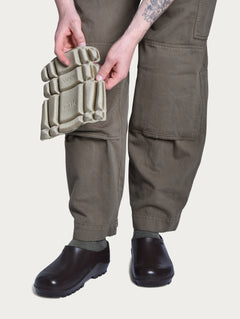 Trädgårdsbyxan Dagg är en slitstark och följsam byxa med lös passform och resår i midjan, framtagen för att stötta dig genom arbetsdagar i rörelse. Skapad med omsorg för att fungera lika bra i trädgården som till vardags. De rymliga fickorna rymmer allt från redskap till fröpåsar. Vid benslutet finns knappar som gör det enkelt att justera vidden – praktiskt när du växlar mellan olika trädgårdssysslor. Vid knäna finns en öppning för våra knäskydd eller dina egna inlägg, så att du kan rensa ogräs i timmar utan att förbanna marken.