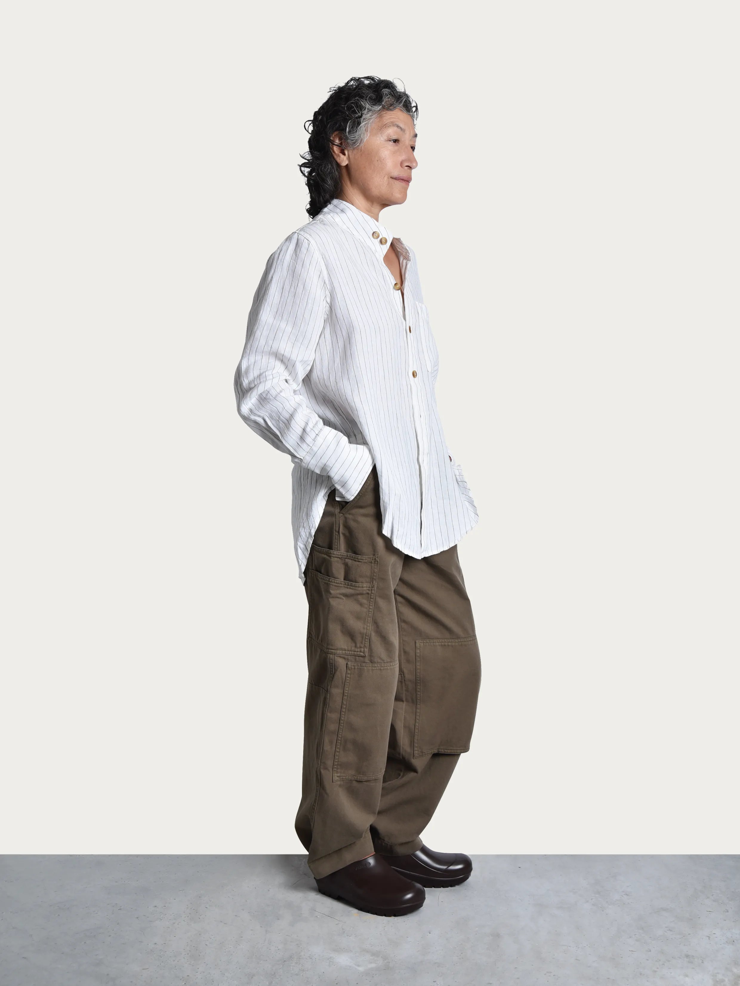 Ärmmudden är något upphöjd för en tajtare passform, vilket gör det enklare att arbeta obehindrat bland snåriga buskar och prunkande perenner. Med sin avslappnade passform och material 100 % linne är den formgiven för att andas i rörelse – oavsett om du planterar, beskär eller pausar i skuggan