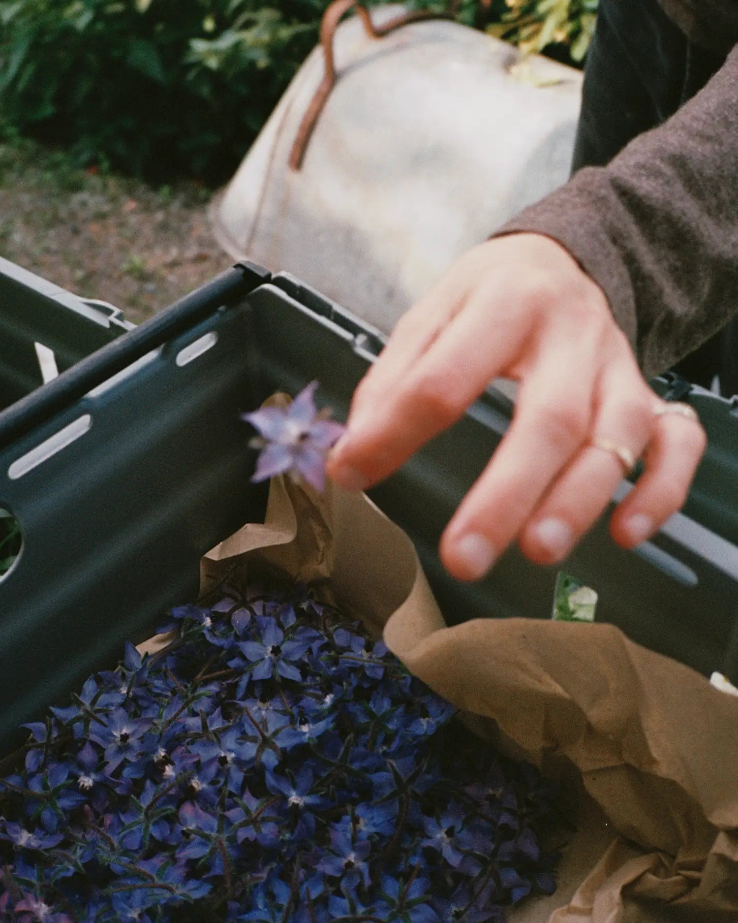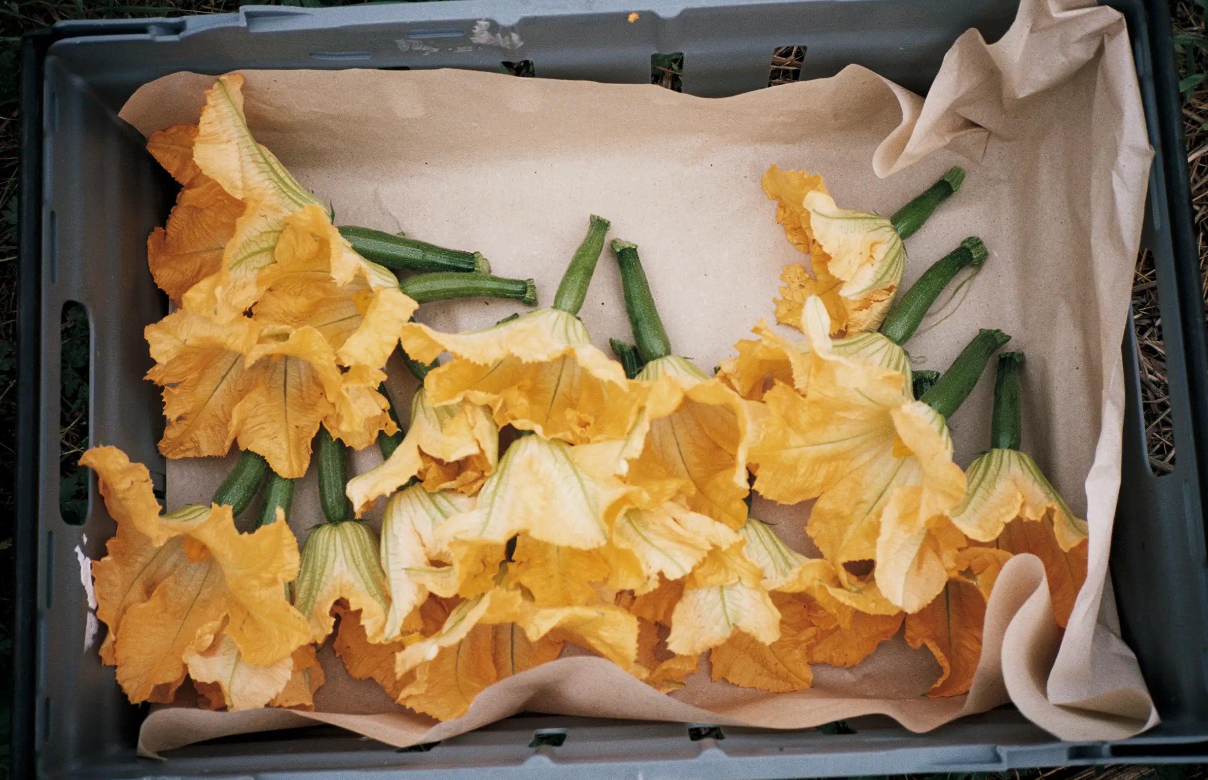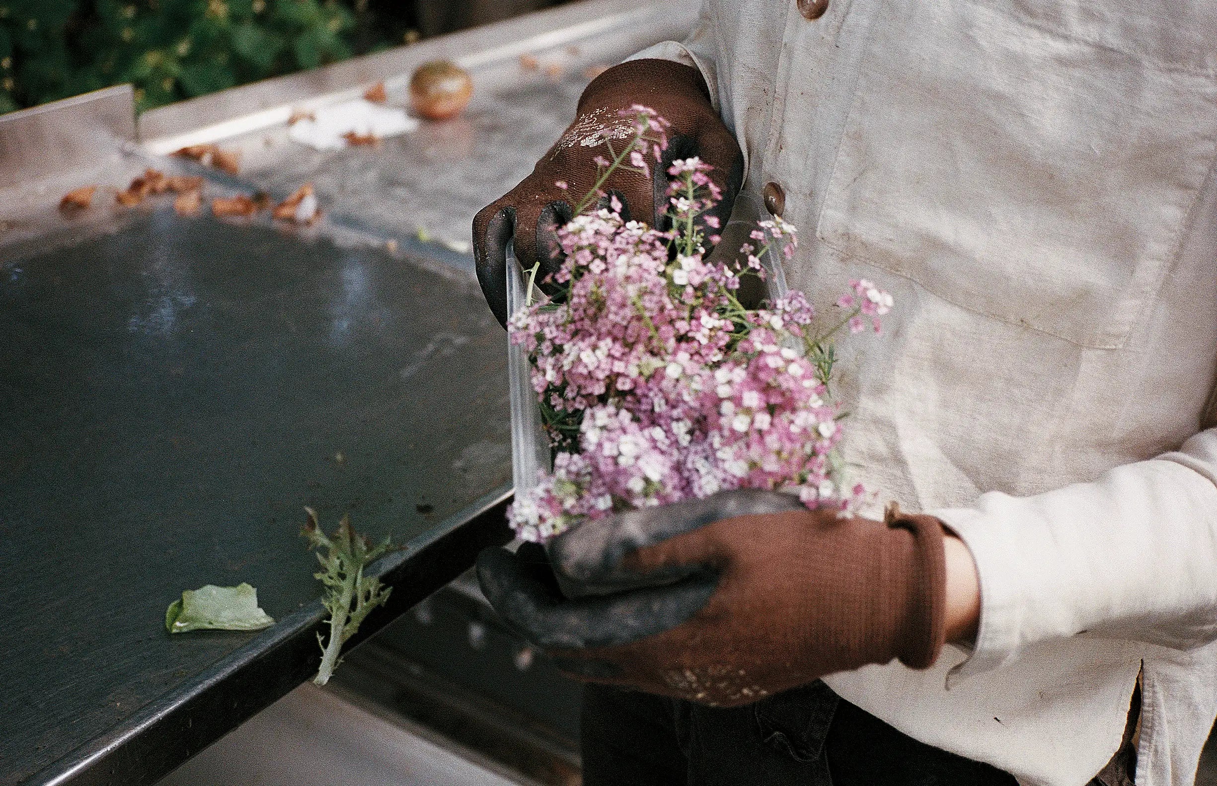 Vi började enkelt. Plöjde upp en liten del av marken och satte igång. Sedan har odlingen vuxit fram år för år. Från början odlade vi inga blommor, förutom våra gröngödslingsväxter. Men ganska snabbt märkte vi att de gick att använda till restaurangerna också. Så snart bytte vi ut alla inköpta snittblommor mot våra egna.