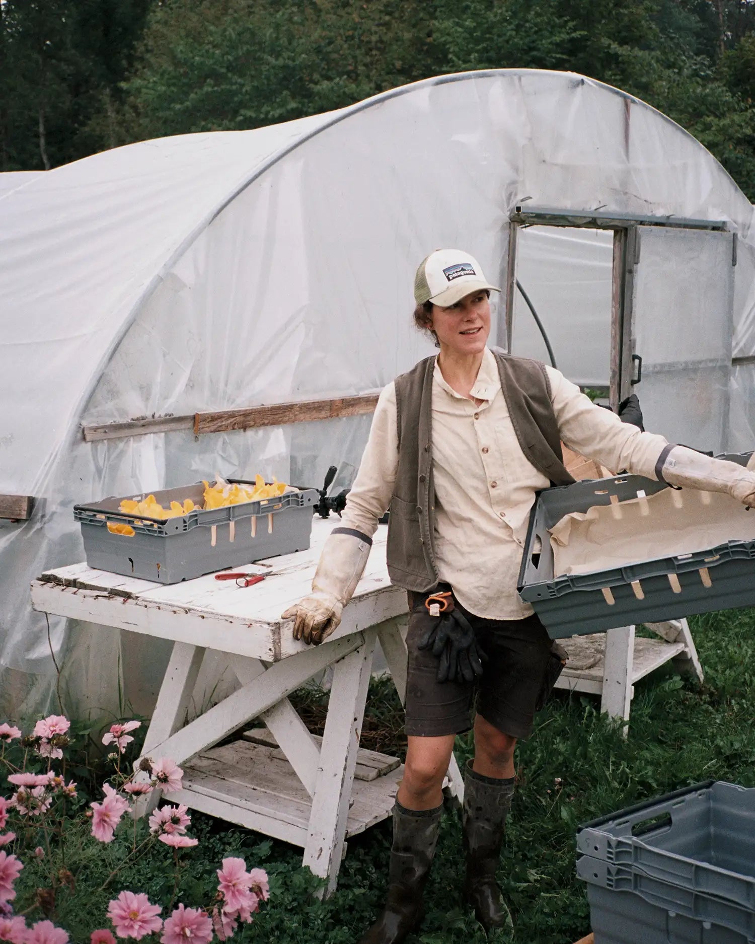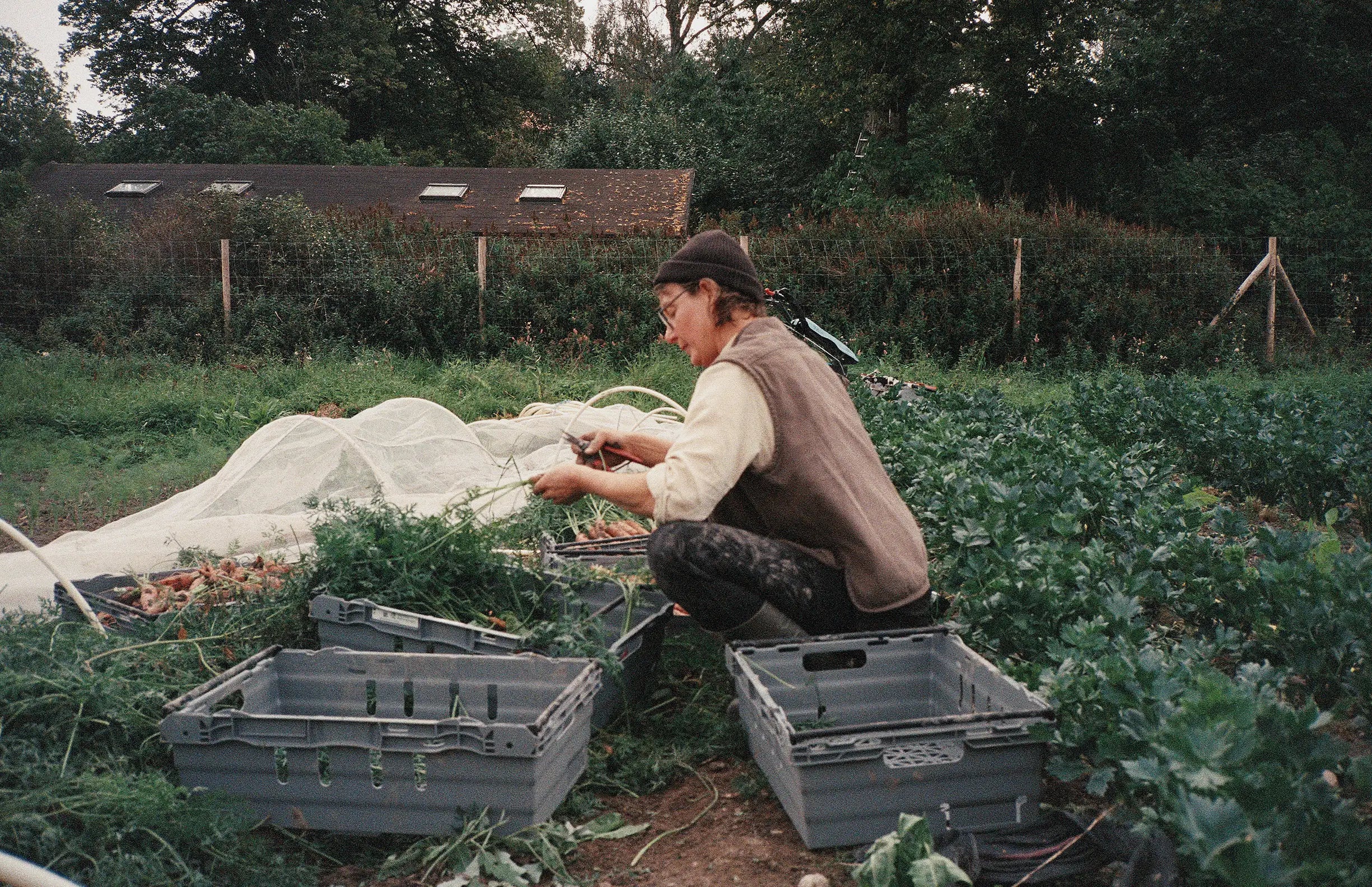 MH: Det varierar mycket över året, och det är just det som gör arbetet så spännande. Men under skördesäsongen börjar vi klockan sju på morgonen med att gå ut på fältet och skörda. Då har vi listor med beställningar från restaurangerna. Sedan samlar vi allt vid sköljstationen, sköljer av och packar.