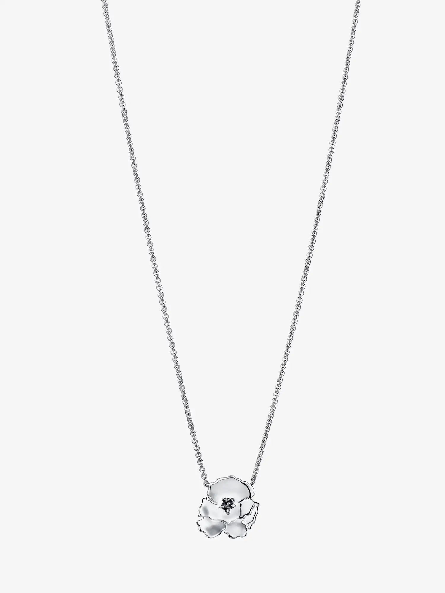 Halsband i återvunnet sterlingsilver med ett hänge formad som en anemon med oxiderade pistiller.