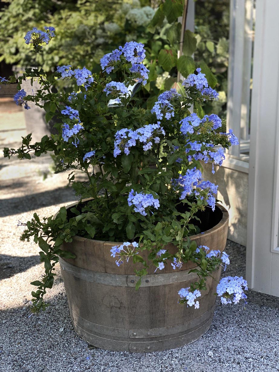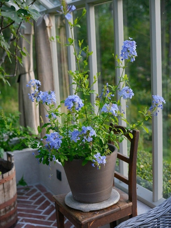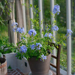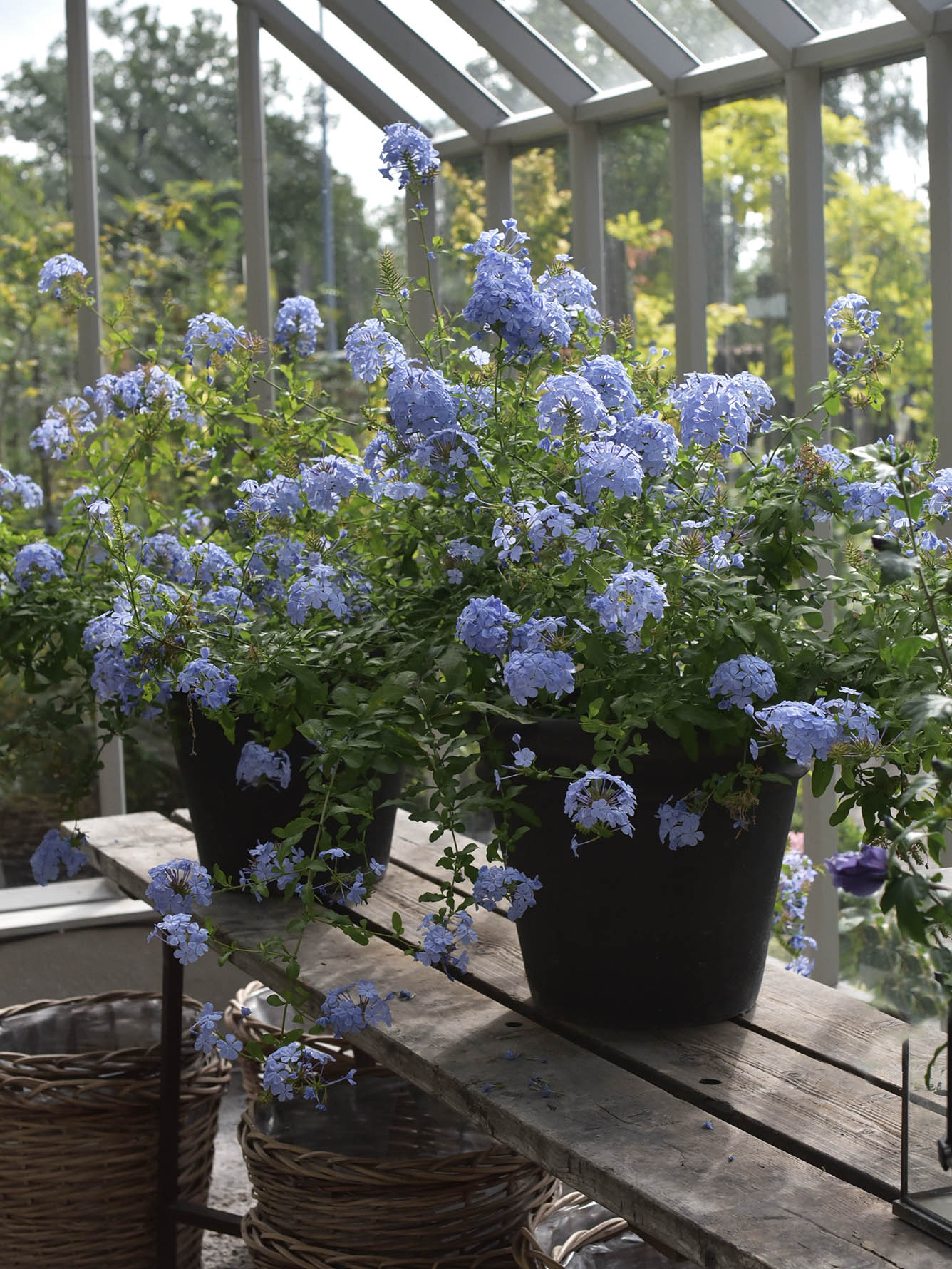 Blyblomma är en underbar krukväxt som med fördel kan stå ute på sommaren. Blommar med himmelsblå blommor från maj till september. Får yviga grenar som kan bindas upp på båge eller spalje. Trivs i full sol.