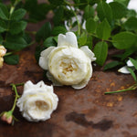 Austinrosen 'CLAIRE AUSTIN' är en elegant vit ros som blommar rikligt under säsongen. Den har svagt citronfärgade knoppar som öppnar sig till tätt, fyllda cremévita blommor. Stark doft av myrra, vanilj och heliotrop. Friskt, frodigt bladverk med bågböjda grenar vilket gör rosen lämplig också som liten klängros. Den blir ca 150 cm hög och är en robust och frisk ros som är lätt att kombinera med vackra lökväxter, pioner och perenner i trädgården.