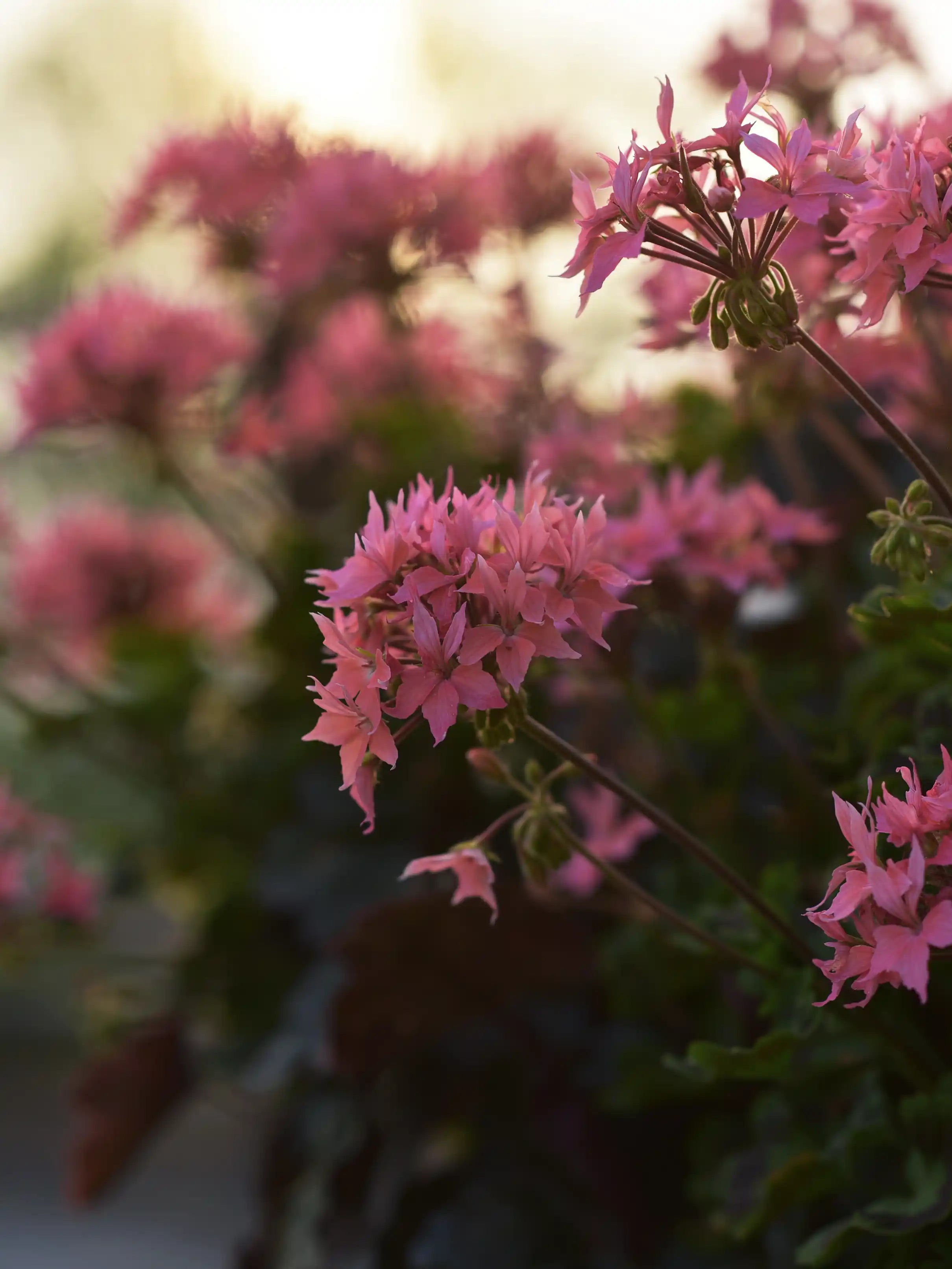 Stjärnpelargon 'Summer Twist Rose', Pelargonium 'Summer Twist Rose' sticker ut från mängden med sina klasar av stjärnformade rosa blommor på buskiga, upprätta plantor. Bladverket är grönt med mörkbruna skiftningar längs sidorna. En twist på den vanliga pelargonen. Fantastisk att plantera i en större kruka utomhus. Utsedd till årets pelargon 2025.