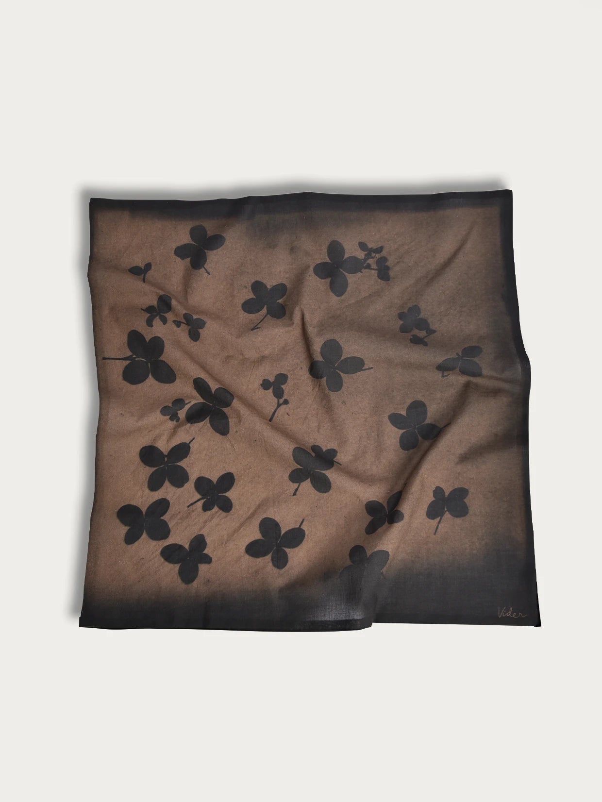 Resultatet är två harmoniska uttryck tryckt och vävd i 100% bomullsvoile. Ett tunt och lätt tyg med hög trådtäthet, vilket ger en silkeslen och mjuk känsla mot huden. Bär den runt halsen, huvudet eller över axlarna.